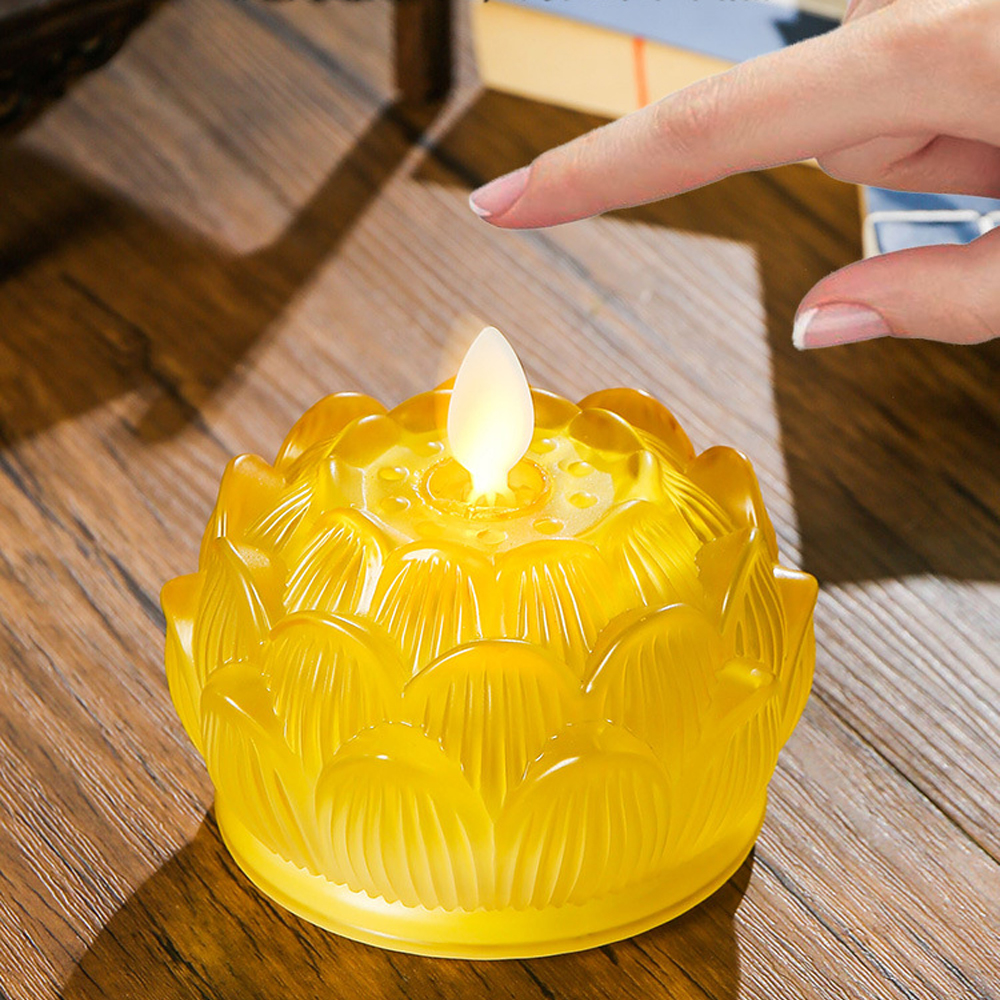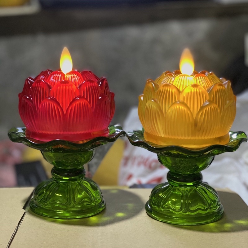 ✨Đèn Nến Điện Tử Hoa Sen Thủy Tinh Nhiều Màu, Dùng Trang Trí Để Ban Thờ Cúng