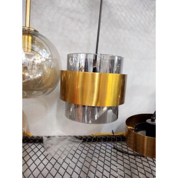 Mô tả sản phẩm Chất liệu: Đế bằng inox mạ vàng,chao là thủy tinh trong màu khói, viền kim tông màu vàng Đui e 27. Số lượng: 01 cái