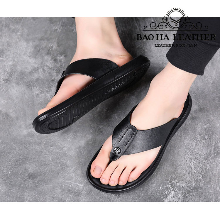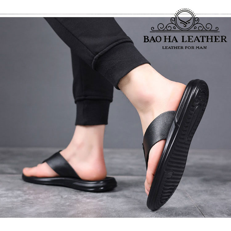 - Màu : Đen - Chất liệu bên ngoài: dép được làm toàn bộ bằng da bò cao cấp tuyệt đối không bong tróc hay nổ da càng đi lớp da càng mềm mại bóng