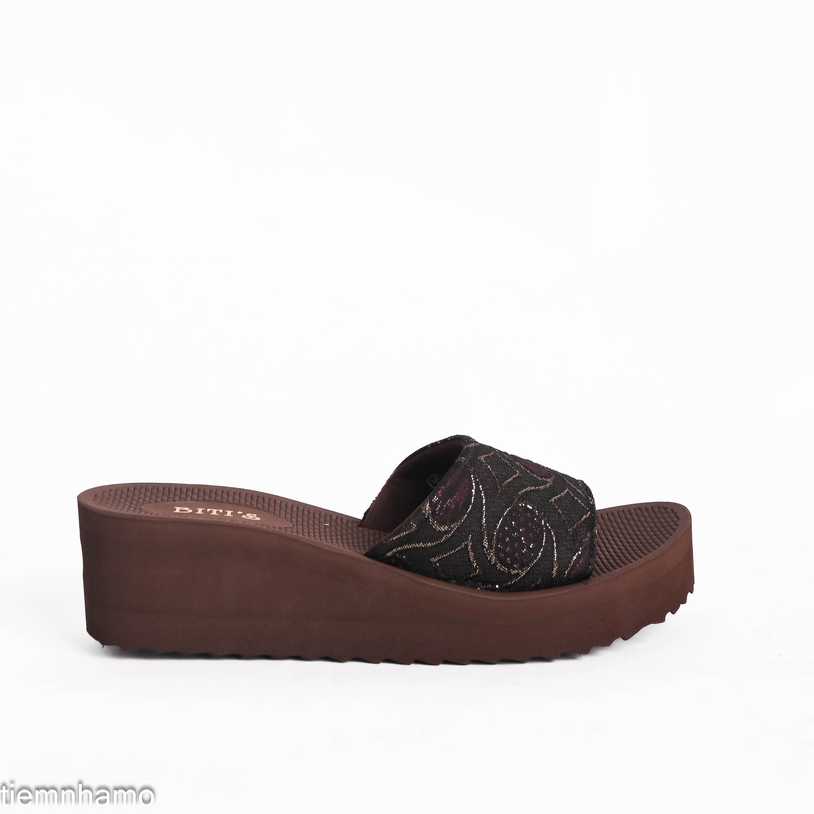 (V) Mô tả sản phẩm: Dép quai ngang Biti's nữ: Chất liệu:PVC cao cấp. Màu sắc:Dark Brown-Black Size:35-36-37-38-39. Dép được thiết kế với đế có xẻ rãnh chống trượt. Phần quai được làm băng vải giúp thấm hút mồ hôi tốt, dép được thiết kế với chất liệu êm nhẹ cho đôi chân bạn. Chiều cao đế 5cm giúp tôn giáng. Quai ngang của dép giúp bạn dễ dàng thao tác xỏ hoặc tháo và dép cũng rất dễ lau chùi. Gram màu của dép giúp bạn dễ phối đồ.