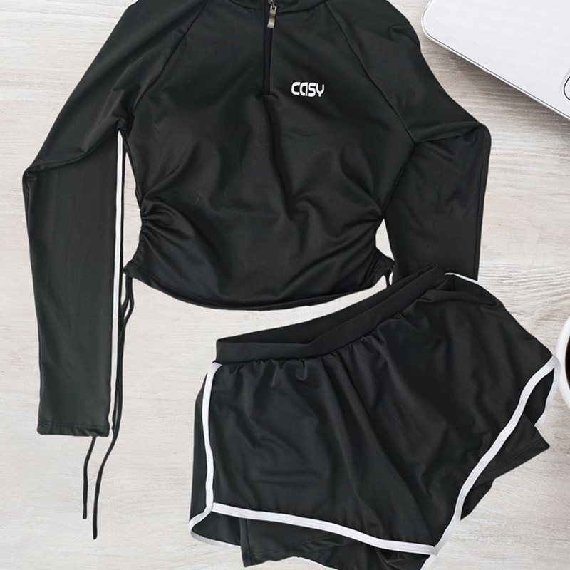 Set Đồ Bơi Nữ Rời Đùi Dài Tay Đi Biển Đi Bơi Chất liệu Polyester 95%, mật độ dệt vừa Áo có sẵn lớp đệm, hông áo có thể rút lên làm croptop cá tính