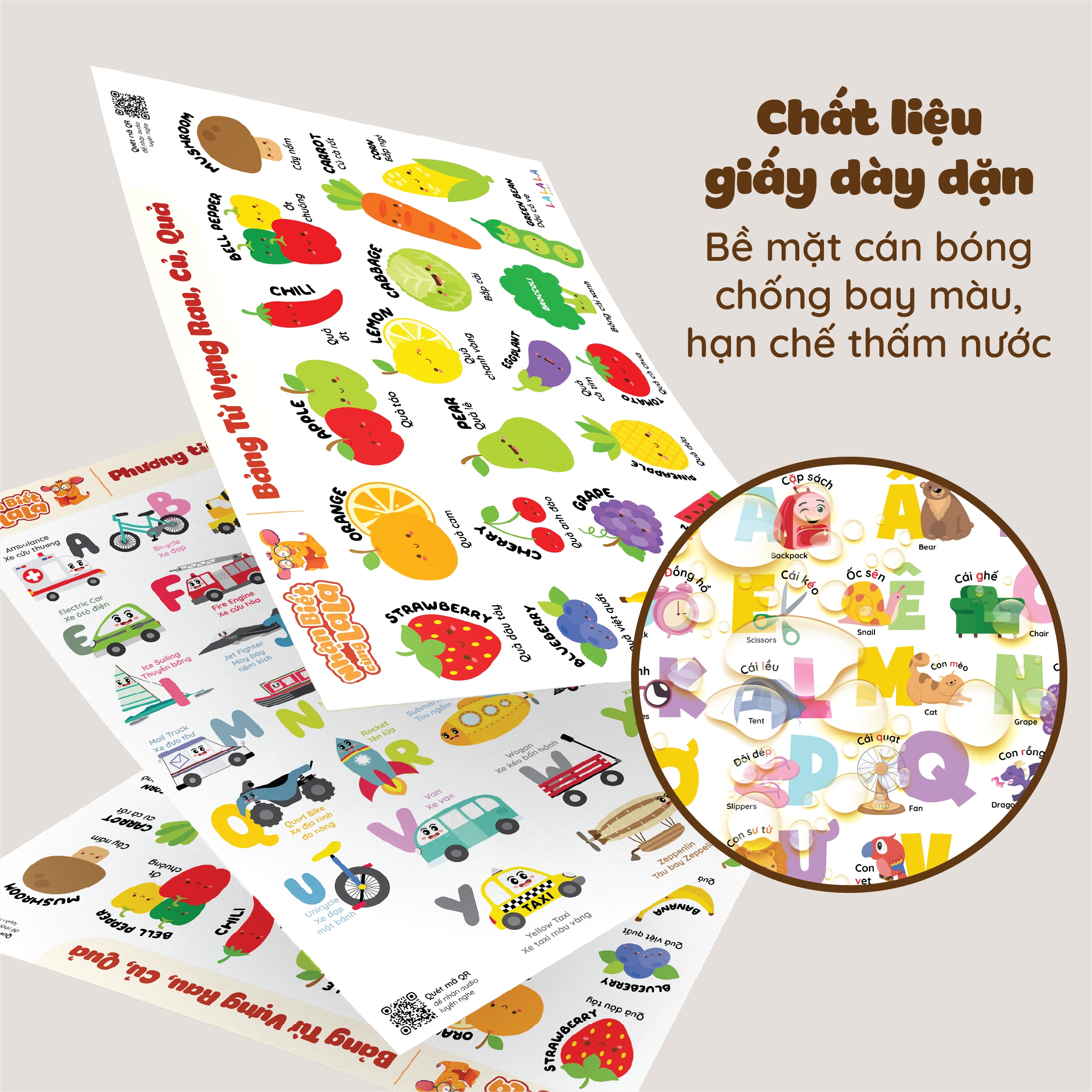 Đồ Chơi Giáo Dục Sớm – Poster Dán Tường (Không Keo Dính) Song Ngữ Anh Việt – Bảng Chữ Cái - Chữ Số - Cửu Chương – Động Vật – Rau Củ Quả - Lalala