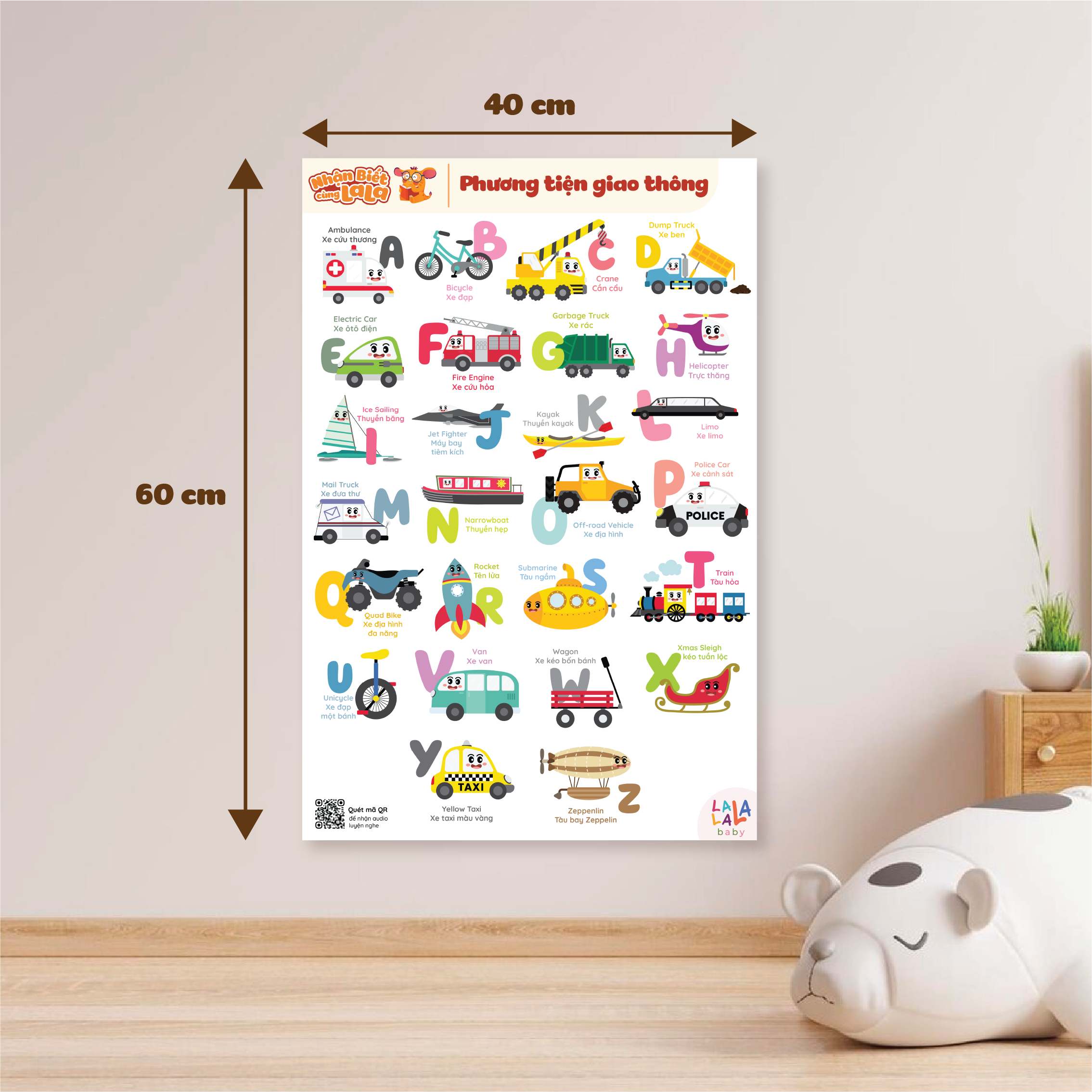 BẢNG GIÁO DỤC CHỮ CÁI CHO BÉ TIẾNG ANH, BẢNG GẤP THÔNG THÁI SONG NGỮ ANH - VIỆT LALALA BABY