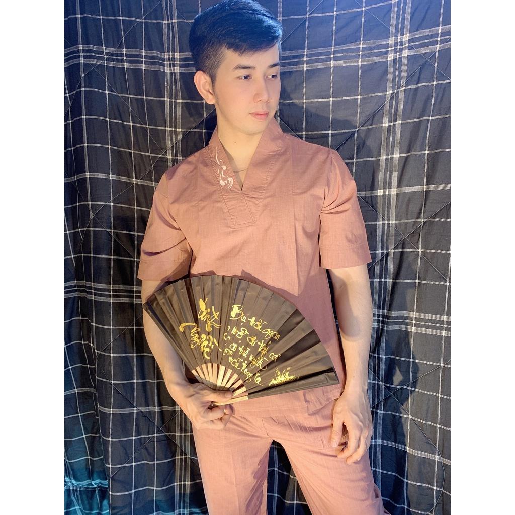 quần áo Phật tử cổ tàu cài chéo - đồ lam đi chùa Sen Hồng - set Phật tử nữ đẹp 0898553583