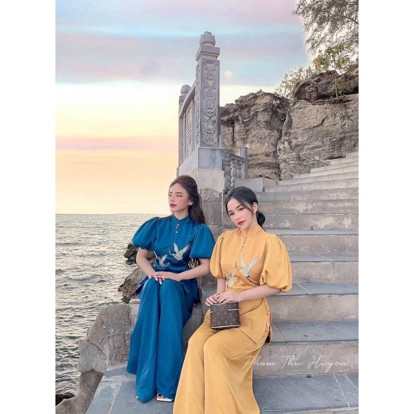 Bộ Cổ Tàu Tay Bồng, Pháp Phục Đi Chùa, Bộ Lam Đi Chùa Siêu Xinh, Pháp Phục Cô Thỏ