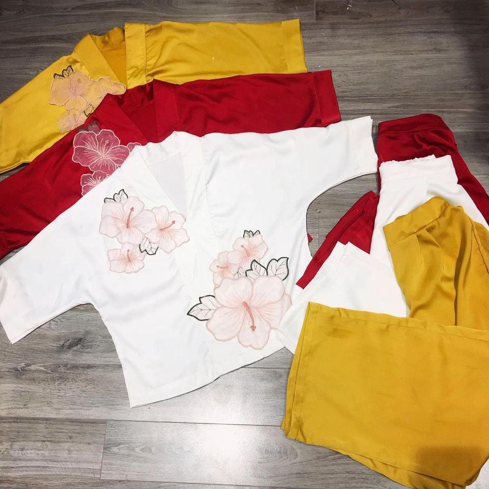 Chất Vải Lụa Pháp Phối Gấm Cao Cấp Hoặc Vải Lụa Phối Gấm Tuỳ Màu Và Size Nên Chất Vải Khác Nhau Quần Ống Rộng Cổ Áo Chui Không Cài Nút BÁN LẺ GIÁ SỈ