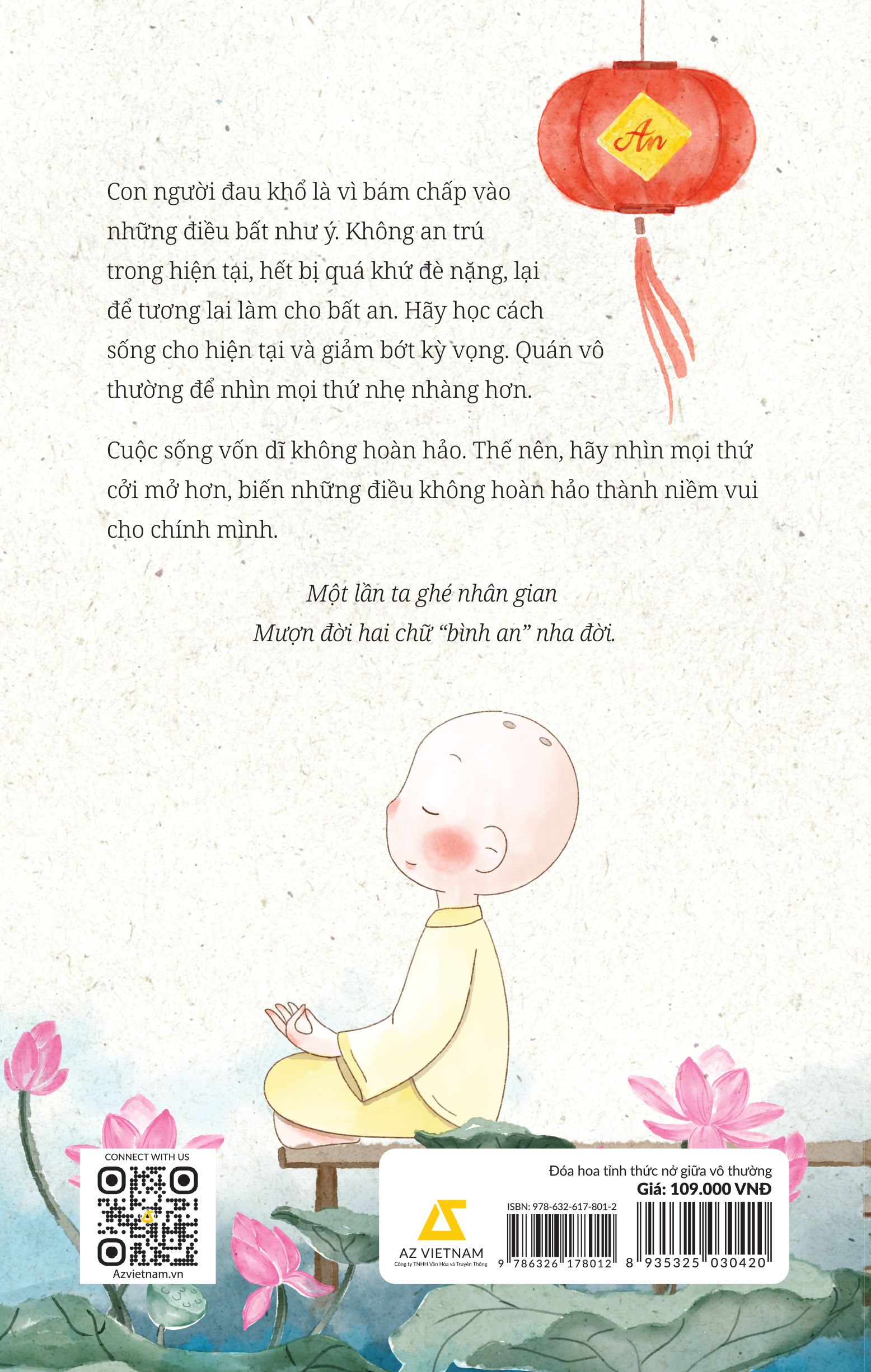 “Đóa hoa tỉnh thức nở giữa vô thường” là tập thơ kết hợp tô màu giúp bạn buông bớt những vội vàng, thong dong mọi nẻo đường! “Hạnh phúc là gì nhỉ Là nhà rộng, xe sang Là công danh địa vị Là quyền lực ngút ngàn Hạnh phúc là mặc đẹp Ăn hải vị sơn hào Ấm êm trong nhung lụa Là một bước lên cao” Khi trẻ, ta thường nghĩ hạnh phúc là có thật nhiều thành công, có tiền bạc, danh vọng, có được ánh nhìn ngưỡng mộ của người khác. Nhưng rồi, những chông chênh, mất mát, những đêm dài không ngủ và những lần gục ngã cho ta thấy tất cả đều chỉ là tạm bợ. Có tiền mà bất an, có danh mà lo lắng, thì niềm vui cũng ngắn ngủi. Ngược lại, chỉ cần trong lòng bình thản, ngay cả bữa cơm đơn sơ, một ngày nắng nhẹ, một buổi chiều ngồi nghe tiếng gió, cũng đã thấy đủ đầy. “Đóa hoa tỉnh thức nở giữa vô thường” là khoảng lặng giữa thế gian vô thường, ôm lấy những phiền muộn của bạn, nơi bạn có thể buông bỏ bớt tham cầu, giữ lòng rộng mở để yêu thương đủ đầy và sống thật với mình. Sau cùng, cuộc đời này không đo bằng bao nhiêu thứ ta sở hữu, mà bằng trạng thái tâm hồn khi đêm về lòng nhẹ nhõm, khi sáng ra có thể mỉm cười chào một ngày mới. Và đó mới là tài sản quý giá nhất. “Nếu một hôm thấy cuộc đời mệt quá Xin hãy dừng lại hít thở sâu Đừng ép mình bởi đời nhiều vất vả Hãy nhẹ nhàng gỡ rối, chẳng sao đâu.”