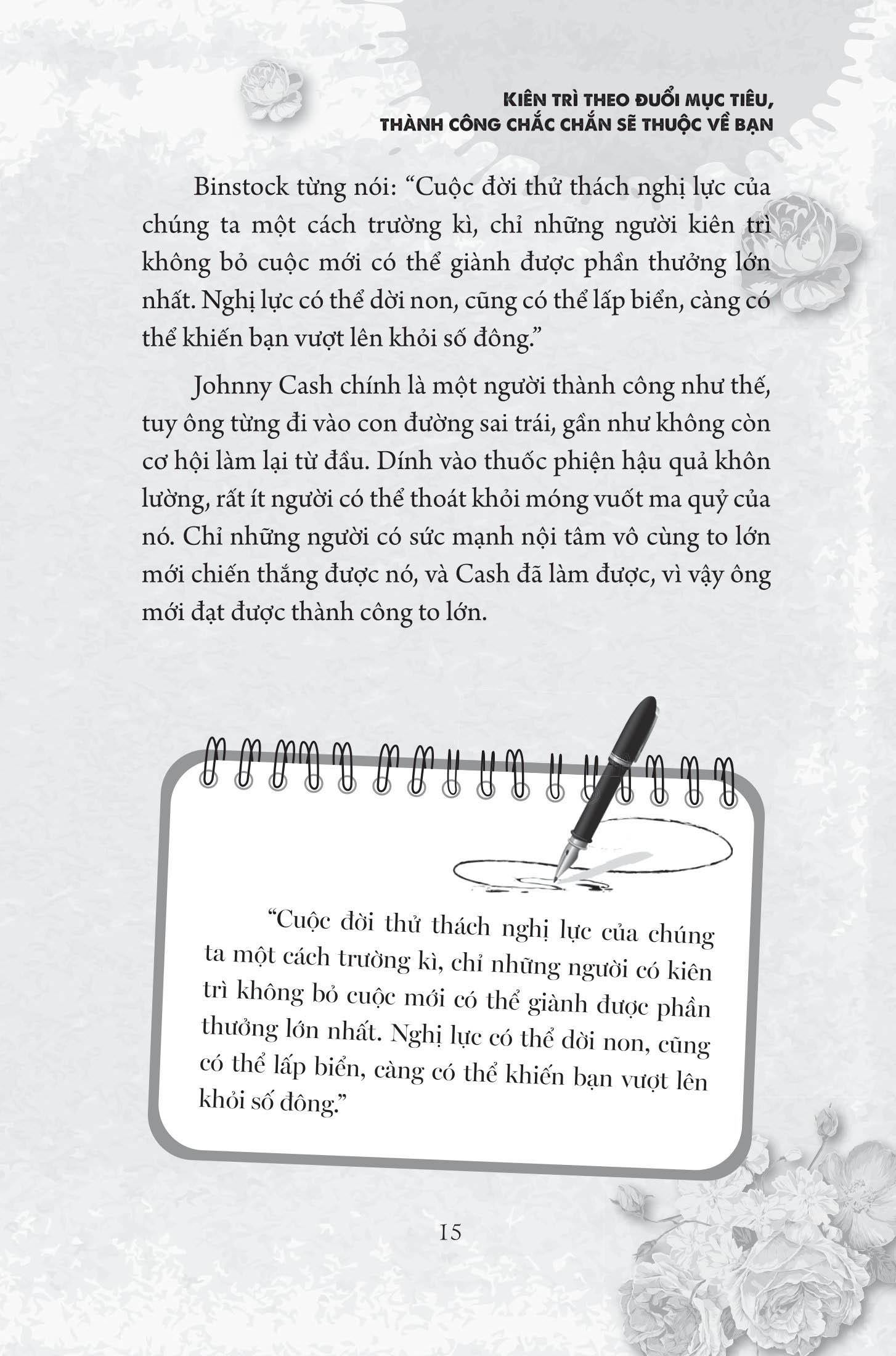 Trong bối cảnh như vậy, chúng ta cần học hỏi kinh nghiệm của người đi trước để có thể phát triển tốt hơn, nâng cao tố chất tự thân, khiến bản thân thực hiện được những mục tiêu to lớn hơn trong cuộc đời. Cuốn sách này đúc rút những tinh tuý trong lí thuyết thành công của Carnegie, đồng thời giải thích chúng một cách tường tận qua các câu chuyện thú vị, nội dung phong phú và ngụ ý sâu sắc, chắc chắn sẽ đem lại cho độc giả nhiều điều bổ ích. Luôn kiên trì, không từ bỏ dễ dàng là một trong những tinh tuý mấu chốt trong lí thuyết thành công của Carnegie, bởi đó là điều kiện bắt buộc để thành công. Khi mới xuất bản sách, Carnegie cũng từng trải qua nhiều lần thất bại, nhưng ông tin vào năng lực của bản thân, đồng thời kiên trì với quan điểm của m.ình, nhờ đó đạt được thành công. “Kiên trì bền chí, vượt qua giới hạn” sẽ giúp chúng ta tạo ra được một cuộc sống vui vẻ và thành công!
