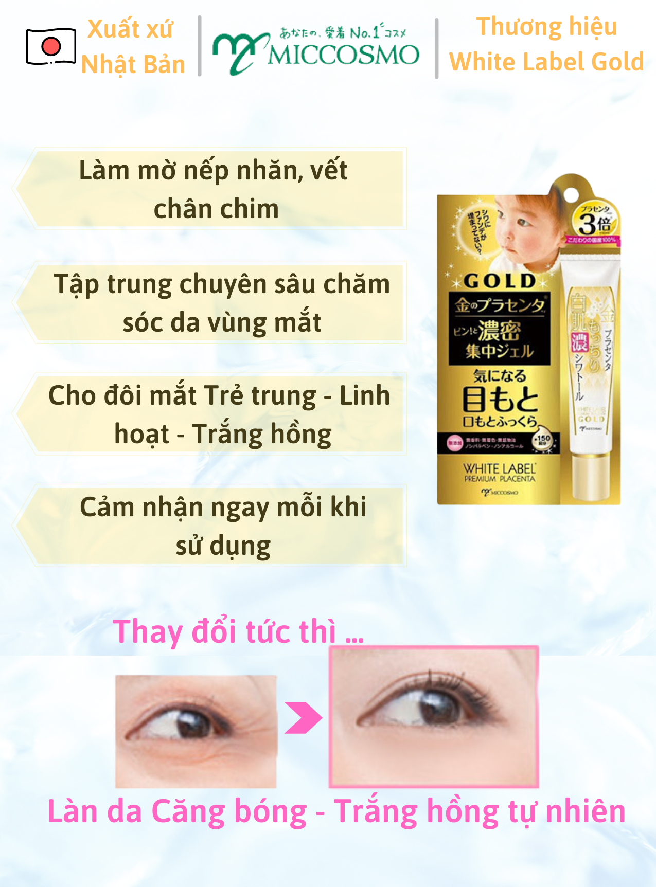 ✨[DƯỠNG TRẮNG TOÀN DIỆN] Combo Bộ Sản Phẩm Dưỡng Da Cao Cấp Nhau Thai Nhật Bản MICCOSMO White Label Gold (Nước Hoa Hồng, Gel Tẩy Trang, Kem Dưỡng, Kem Mắt - CB09)