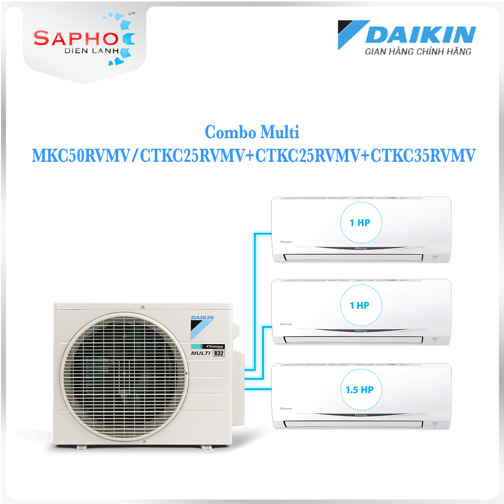 ✨[Free Lắp HCM] Hệ Thống Máy Lạnh Multi S Daikin Inverter Combo MKC50RVMV/CTKC25RVMV+CTKC25RVMV+CTKC35RVMV Gas R32 Treo Tường 1 Chiều Lạnh Hàng Chính Hãng