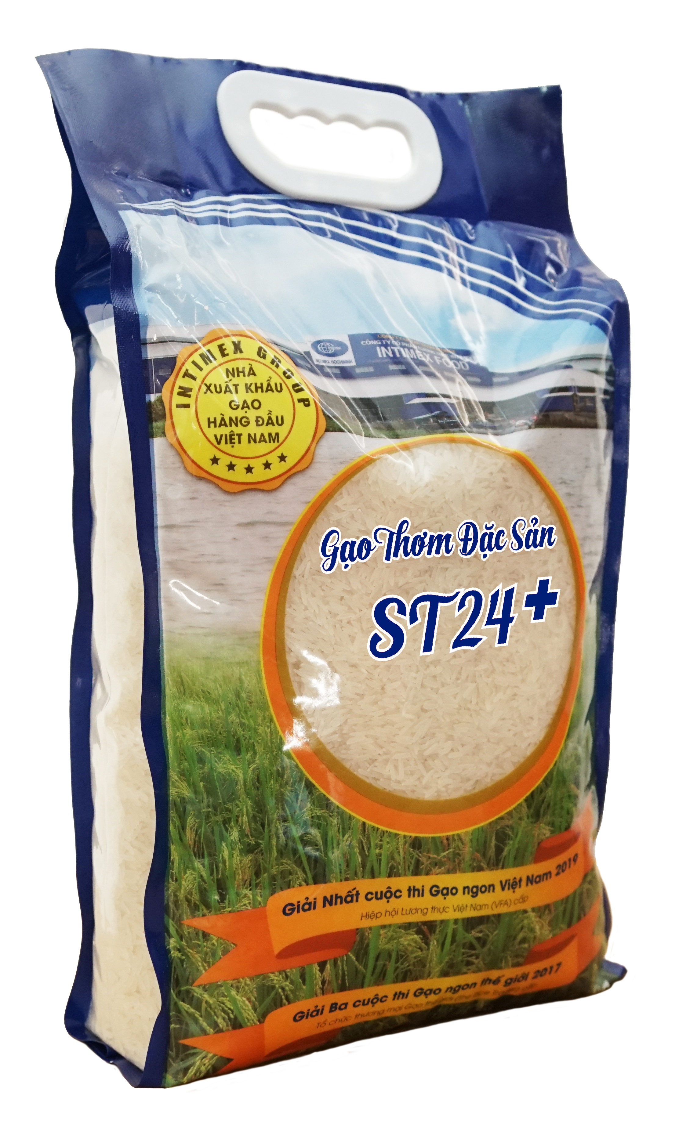 Gạo thơm đặc sản ST24+ là sản phẩm được sản xuất tại nhà máy chế biến gạo xuất khẩu của Tập đoàn Intimex với tiêu chuẩn quy trình sản xuất lúa gạo nghiêm ngặt, đạt các tiêu chuẩn an toàn vệ sinh thực phẩm HACCP, ISO 9001:2015. Gạo ST24+ được làm từ giống lúa thơm, cực kỳ nổi tiếng của vùng đất Sóc Trăng, hạt gạo đạt chuẩn hạt dài, ngọt cơm, dẻo vừa và đặc biệt có hương thơm dứa tự nhiên. Đặc biệt, khi để nguội cơm vẫn ngon, không bị khô hay cứng !!! Các giải thưởng nổi bật về hạt gạo ST24: Đạt giải Nhất Gạo Ngon Việt Nam 2019 do Hiệp hội Lương thực Việt Nam cấp Đạt giải 3 Gạo Ngon Thế Giới 2017 do Tổ chức thương mại Gạo thế giới cấp Gạo thơm đặc sản ST24+ của Intimex Group sản xuất, đạt chỉ tiêu 3 KHÔNG: