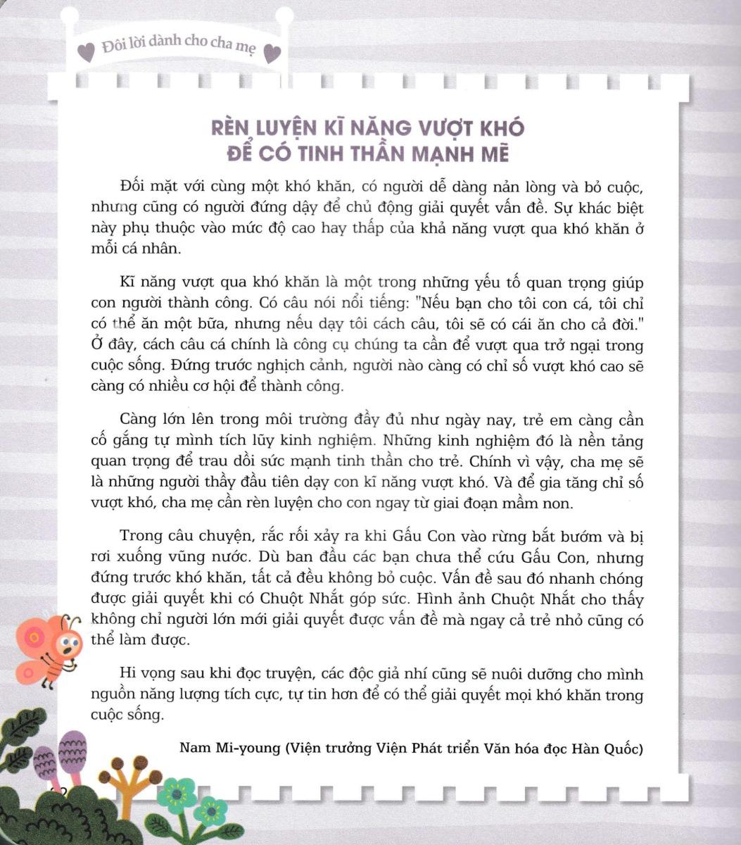 Giữa rất nhiều cuốn sách dành cho thiếu nhi mang tính giáo dục cao, bộ truyện Gấu Con tinh nghịch – Sách tranh giáo dục nhân cách của nữ nhà văn Hàn Quốc Nam Mi-young được đánh giá là gần gũi và phù hợp để các bậc cha mẹ sử dụng làm “sách gối đầu giường” trong quá trình nuôi dạy con.