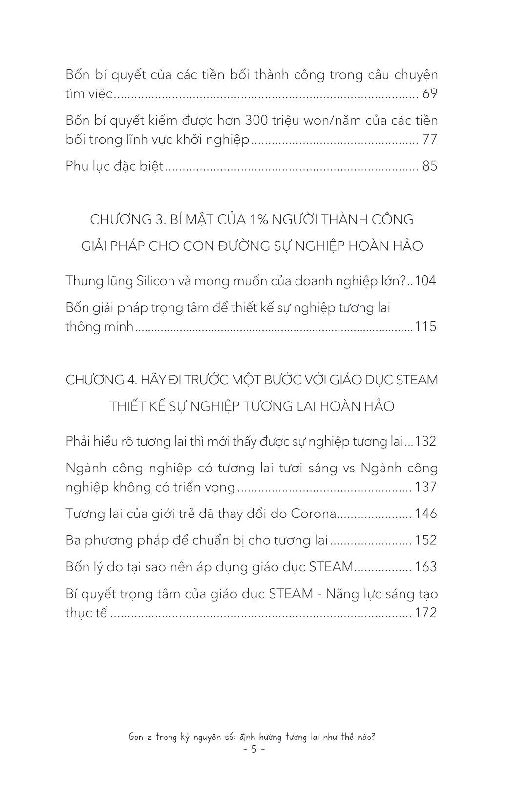 Trong cuốn sách Gen Z trong kỷ nguyên số: Định hướng tương lai như thế nào?, tác giả Yun Kyu Hoon thông qua những cuộc nói chuyện với hơn 330.000 thanh thiếu niên tại các trường trung học sẽ chỉ cho bạn thấy cách làm thế nào để vạch ra một con đường sự nghiệp tương lai đúng đắn dù bạn đã có đam mê hay chưa tìm ra. Việc định hướng này rất quan trọng, đặc biệt trong tình hình cả thế giới đang đối mặt với đại dịch covid và sự thay đổi chóng mặt do nền công nghiệp 4.0 mang lại. Những tư duy nào nên có, những nghề nghiệp nào nên được ưu tiên, những kỹ năng nào cần đào sâất cả đều đang chờ bạn lật mở cuốn sách này để khám phá.