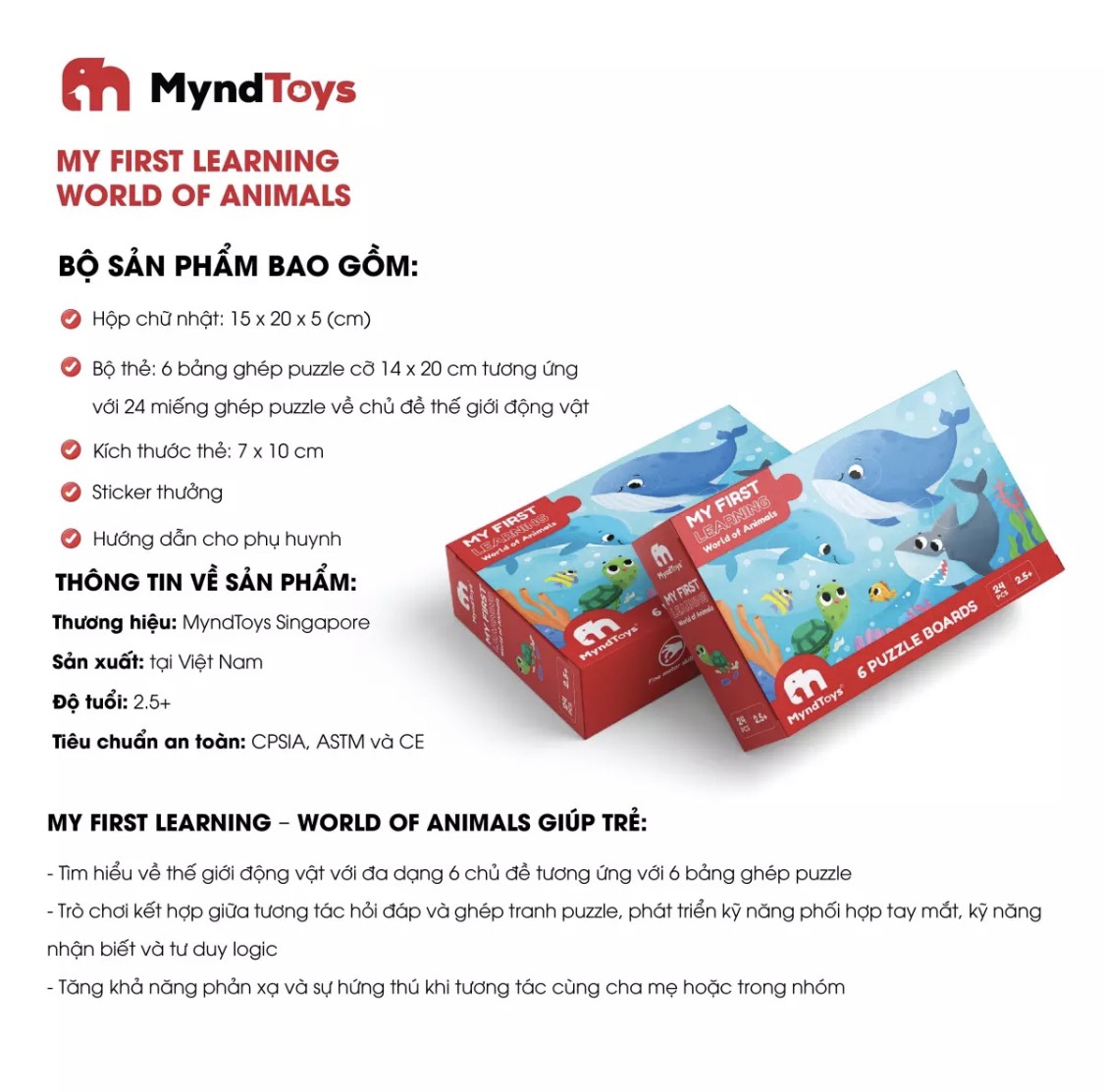 ✨GHÉP HÌNH THẾ GIỚI ĐỘNG VẬT giúp giáo dục sớm cho trẻ 2.5 tuổi trở lên có tặng kèm sticker | World of Animals puzzle chính hãng Myndtoys Singapore