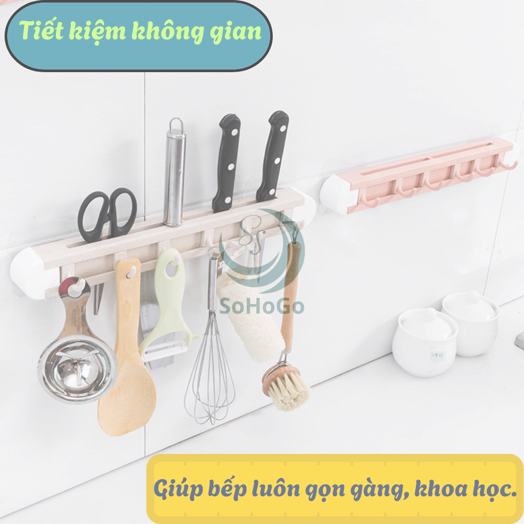 ✨Giá treo dụng cụ nhà bếp đa năng -Kệ treo tường có móc và khe cắm dao kéo -Thanh treo nhà bếp thông minh 6 móc