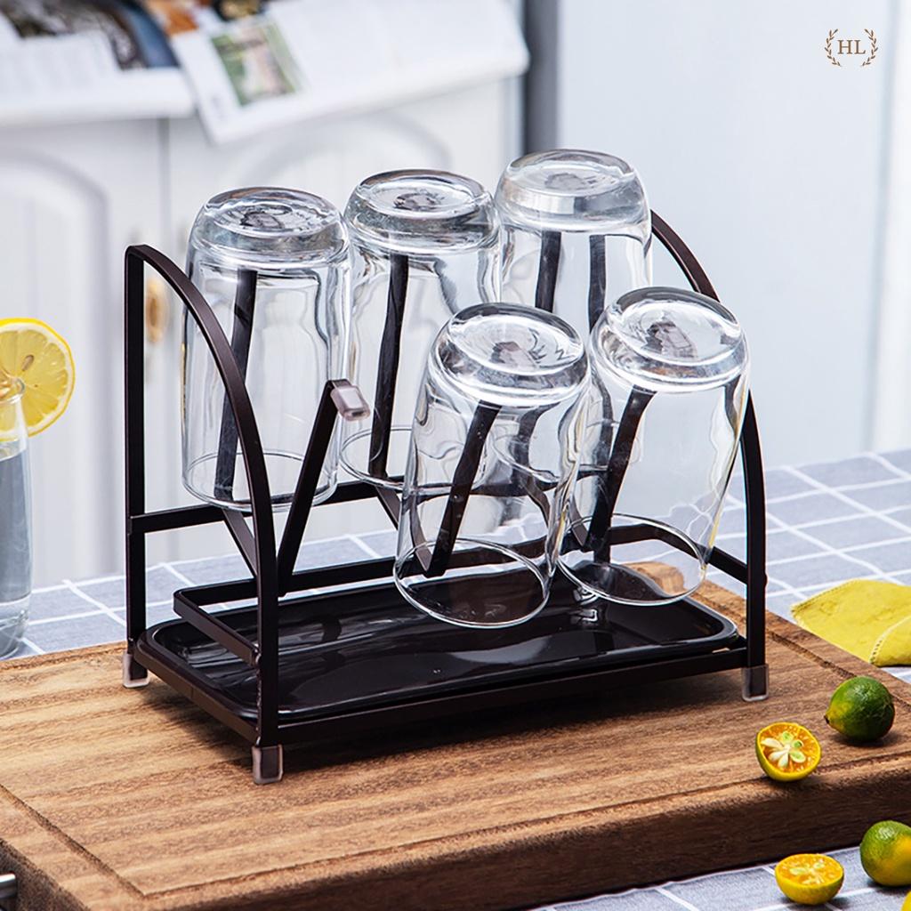 Giá cắm 6 chiếc cốc dạng gọn Giá có khay hứng nước Chất liệu sắt sơn tĩnh điện cao cấp màu nâu cafe đậm cực sang chảnh Dễ vệ sinh, không bị hoen rỉ Kích