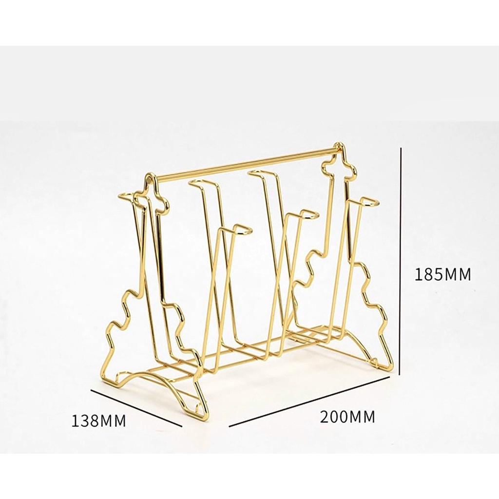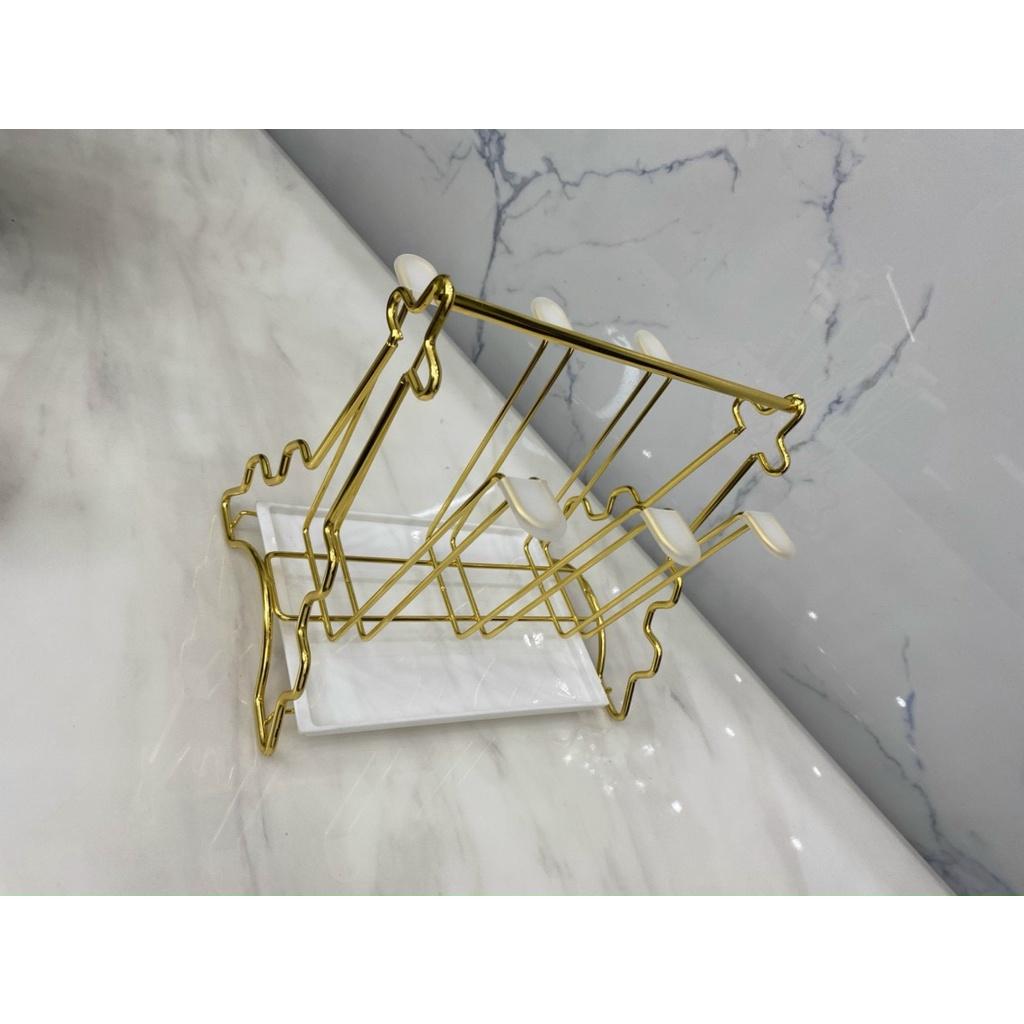 Giá cắm 6 chiếc cốc dạng gọn (CL95965) Giá có khay hứng nước Chất liệu sắt sơn tĩnh điện cao cấp màu vàng cực sang chảnh Dễ vệ sinh, không bị hoen rỉ Kiểu dáng