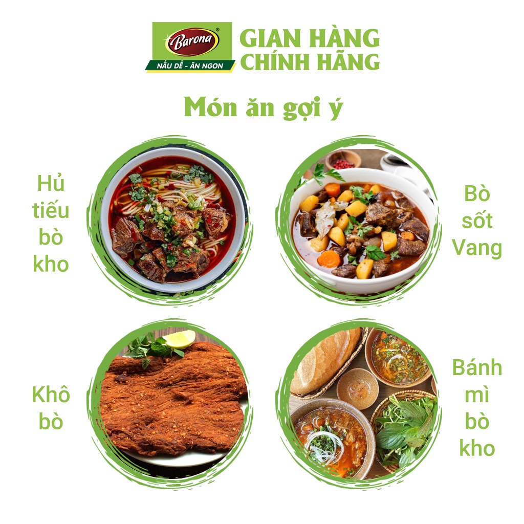 - PHÙ HỢP CHO KHÁCH SỈ Xốt Gia Vị Hoàn Chỉnh Barona là công thức phối trộn độc đáo giữa CHIẾT XUẤT RAU CỦ QUẢ TƯƠI như hành, tỏi, me, cà chua…cùng các loại gia vị truyền thống được chọn lọc, đem đến món ngon chuẩn vị trong tích tắc mà KHÔNG CẦN NÊM NẾM thêm bất kỳ gia vị nào khác. *ĐIỂM MẠNH: Chiết xuất Rau củ quả TƯƠI Sản phẩm Không thêm chất bảo quản Ướp ngon, vị chuẩn, không cần nêm nếm Đạt Hàng Việt Nam Chất Lượng Cao CÓ SẴN CÁC VỊ