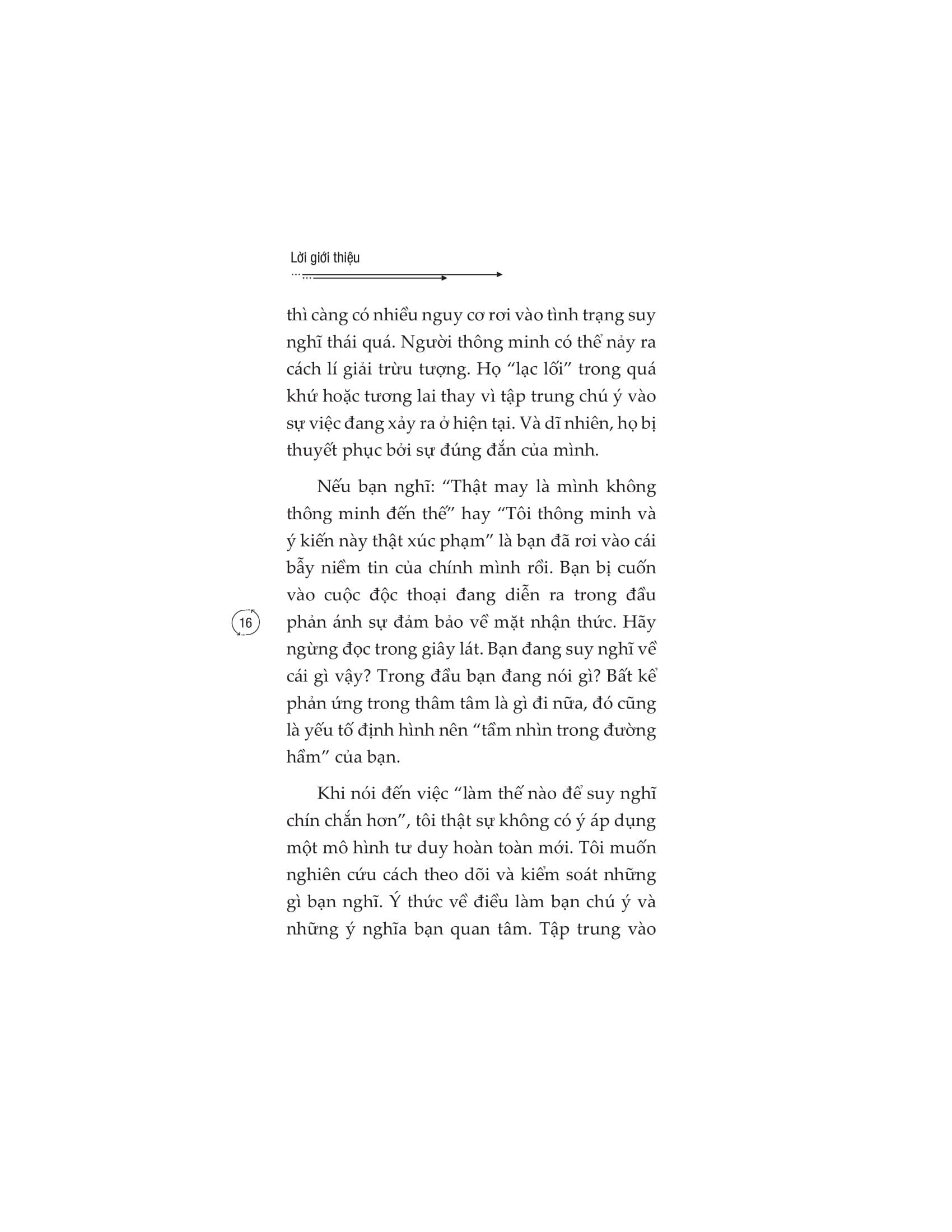 Có một nghịch lý rất quen thuộc là chúng ta thường xuyên được khuyên rằng hãy suy nghĩ kỹ càng trước khi hành động. Nhưng càng cố đào sâu suy nghĩ, càng cân nhắc cẩn thận, chúng ta càng dễ lún sâu vào những cái bẫy của tâm trí. Những cái bẫy đó là cảm xúc lo lắng, bồn chồn, là các luồng suy nghĩ lộn xộn, tiêu cực, mang hơi hướng tự hủy hoại bản thân. Chúng ta bế tắc và không thể thoát ra khỏi các lối mòn, để cuối cùng lại đưa ra những quyết định và hành động cực kỳ thiếu sáng suốt. “Giải phóng bộ não khỏi tư duy độc hại” tập trung vào việc khai thác nguồn gốc gây ra nỗi sợ để chấp nhận và khắc phục chúng, giúp chúng ta kiểm soát các suy nghĩ tiêu cực, cải thiện các mối quan hệ xã hội. Từ đó, giúp người đọc trả lời hai câu hỏi: Vì sao tâm trí bạn thường tự suy diễn ra những ý nghĩ tiêu cực? Làm thế nào để chống lại những suy nghĩ tự hủy hoại bản thân đang làm hại bạn mỗi ngày? Cuốn sách không phải một chỉ dẫn với những lý thuyết khô khan mà sử dụng chính những tình huống đời thường, để hướng dẫn bạn cách cải thiện các mối quan hệ cá nhân, giải phóng tâm trí khỏi nỗi sợ hãi và cho thấy một cách tiếp cận cuộc sống khác. Hãy cùng khám phá cuốn sách, học cách loại bỏ những điều tiêu cực mang tính hủy hoại bản thân và bắt đầu thay đổi tư duy của bạn ngay bây giờ! Tác giả: Steven Schuster trước hết là một người chồng, người cha hạnh phúc của hai đứa con kháu khỉnh. Sinh ra trong một gia đình nhập cư, anh hiểu rõ nhất cuộc đấu tranh của con người và đã dành cả cuộc đời mình để tìm ra giải pháp cho chúng. Anh ấy là một nhà nghiên cứu tâm lý con người nhiệt huyết. Anh đã chọn viết lách là sự nghiệp chính của mình và có nhiều cuốn sách thuộc top bán chạy trên Amazon. Một số trích dẫn “Bạn không thể thay đổi dòng chảy tự nhiên của cuộc số nhưng có thể thay đổi cách bạn lí giải chúng.” “Bản chất con người vốn hay suy nghĩ. Chính khả năng suy nghĩ đó khiến chúng ta khác biệt với các giống loài khác. Chúng ta nhận thức được việc mình suy nghĩ. Thói quen nhận thức ngày càng phát triển hơn khi chúng ta lớn lên. Chúng ta học hỏi từ cha mẹ. Sau đó đi học, lên đại học, tìm được công ăn việc làm, đọc thật nhiều sách, xem cả tá phim ảnh và kết nối với mọi người. Mỗi một hoạt động này đều vô tình ảnh hưởng đến cách suy nghĩ của chúng ta. Kinh nghiệm nhận thức định hình thế giới quan của mỗi người. Mọi thứ mà cá nhân chúng ta trải nghiệm sẽ đi qua bộ lọc của bản thân và được hợp thức hóa. Rất thực tế. Còn thực tế hơn cả những thứ chúng ta chưa từng trải qua. Cho dù những điều chúng ta tin có thể không phải lúc nào cũng đúng.” “Đừng cho rằng những giá trị mà mọi người cho là tiêu cực đều đúng vì chúng ta đều hiểu rằng “sai” hay “đúng” chỉ mang tính chủ quan. Dựa trên kinh nghiệm và giá trị khác nhau, người ta sẽ có câu trả lời khác nhau cho cùng một câu hỏi và không có đáp án nào trong số đó tốt hơn hay tệ hơn cái nào.” “Thay vì tập trung vào những phản hồi vô ích không bao giờ chấm dứt, tốt hơn hết bạn hãy chú tâm vào nguồn gốc gây ra nỗi lo sợ, chấp nhận và khắc phục chúng.” “Tất cả mọi việc bạn thích (hoặc có thể chịu đựng) cùng với một chút kiến thức nền tảng và làm việc chăm chỉ có thể đưa bạn lên đến đỉnh vinh quang. Đam mê đến từ sự tích lũy kiến thức, tự tin và thành công mà bạn góp nhặt bằng việc lao động cần mẫn trong công việc hiện tại. Bạn càng giỏi trong công việc mình làm, bạn càng say mê nó.”