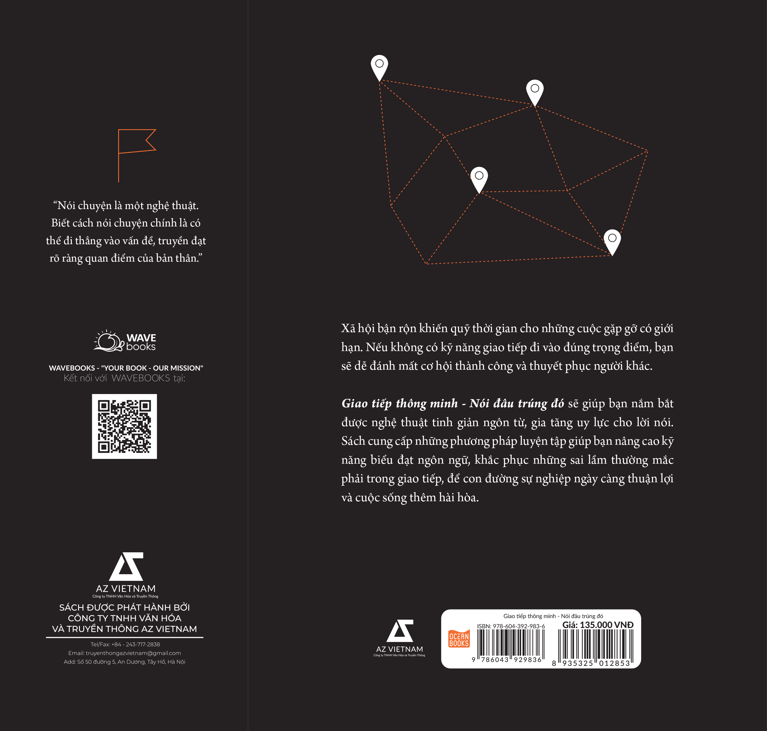 Giao Tiếp Thông Minh - Nói Đâu Trúng Đó Bạn là một người bán hàng nhưng nói tới đâu khách hàng chạy tới đó. Bạn là một người diễn thuyết nhưng ⅔ khán phòng luôn không chú ý lắng nghe. Bạn là giáo viên nhưng mỗi lần giảng bài học sinh không ngủ thì cũng làm việc riêng. Bạn là sinh viên đi thuyết trình nhưng từ thầy cô đến bạn học đều không hào hứng với những gì bạn nói. Bạn thường xuyên không được lắng nghe hoặc bị ngắt lời khi nói chuyện với người khác. Nếu bạn không nghi ngờ gì về chuyên môn và kiến thức của m.ình, rất có khả năng vấn đề nằm ở cách bạn sử dụng câu từ. Sở dĩ việc thuyết phục người khác luôn khó khăn là bởi vì lời nói của bạn thiếu cơ sở thực tế và thiếu “trọng tâm”. Nhịp sống bận rộn khiến con người trở nên hối hả, không có thời gian dành cho những diễn giải dài dòng. Ai cũng thích súc tích, ngắn gọn, đi vào trọng tâm. Đó cũng chính là lý do khiến các video ngắn hoặc reels trở nên phổ biến. Trong giao tiếp thường nhật cũng vậy, để thu hút người khác, lời nói của bạn cần phải có trọng tâm, ngôn ngữ cần được tinh giản và tập trung vào chất lượng thông tin được truyền tải. Như vậy, bạn và đối phương mới có được sự cộng hưởng, giúp bạn tăng sức thuyết phục và khả năng được thấu hiểu khi nói chuyện. Nếu bạn đang gặp vấn đề trong lời ăn tiếng nói, cuốn sách Giao tiếp thông minh - Nói đâu trúng đó có thể là thứ bạn cần. Sách cung cấp những phương pháp luyện tập hữu ích để nâng cao kỹ năng biểu đạt ngôn ngữ, khắc phục những sai lầm thường mắc phải khi nói chuyện. Nhờ giao tiếp tốt, sự nghiệp của bạn sẽ rộng mở, cuộc sống cũng hài hòa hơn.