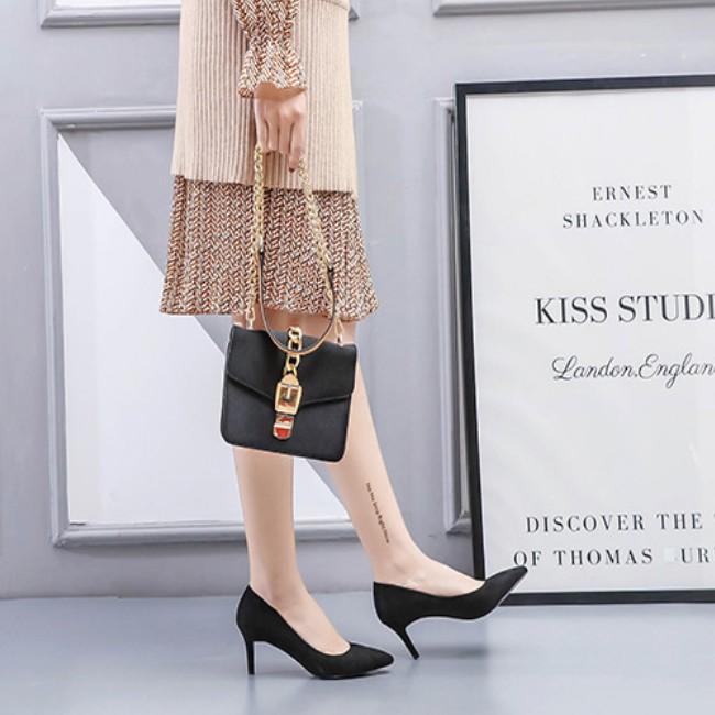 Thiết kế mũi nhọn bít đầu đơn giản, tạo vẻ thanh tú, dịu dàng nhưng không kém phần sang trọng cho phái nữ. Độ cao gót 7cm giúp bạn nữ cải thiện chiều cao đáng