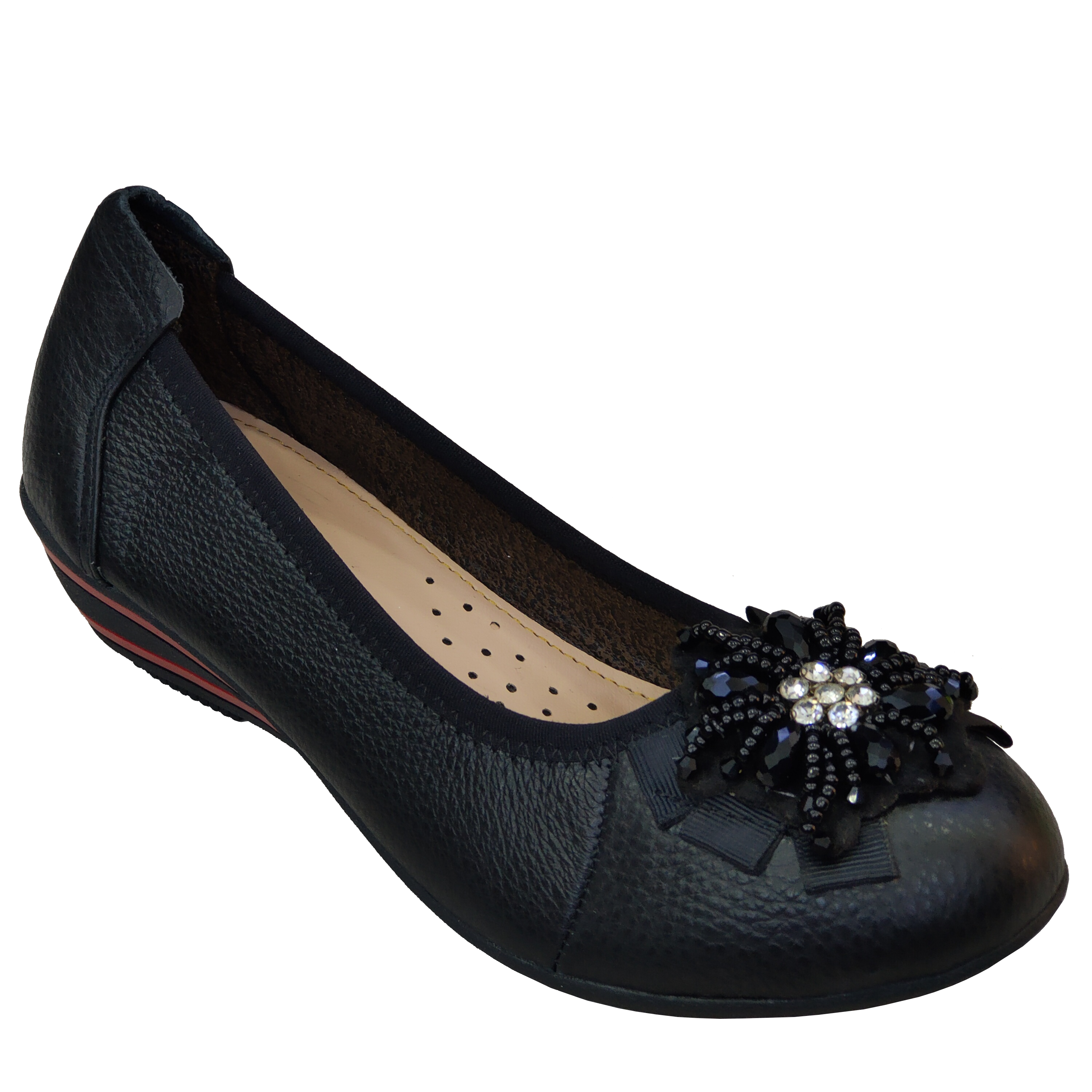 Giày đế xuồng 3cm đính nơ đen Trường Hải da bò thật