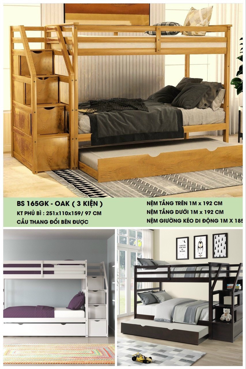 Giường 3 tầng gỗ tự nhiên 165 | Nội Thất KAYA