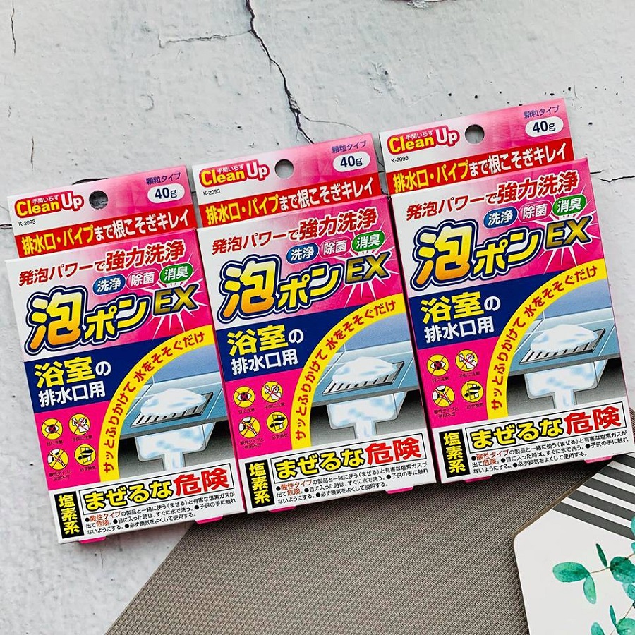 Gói bột tẩy rửa thông tắc đường ống vệ sinh đa năng - Nội địa Nhật : -Thành phần: Dichloroisocyanurate, Perborates, Natriaxit, chất hoạt động bề mặt, phụ gia... -Công dụng : -