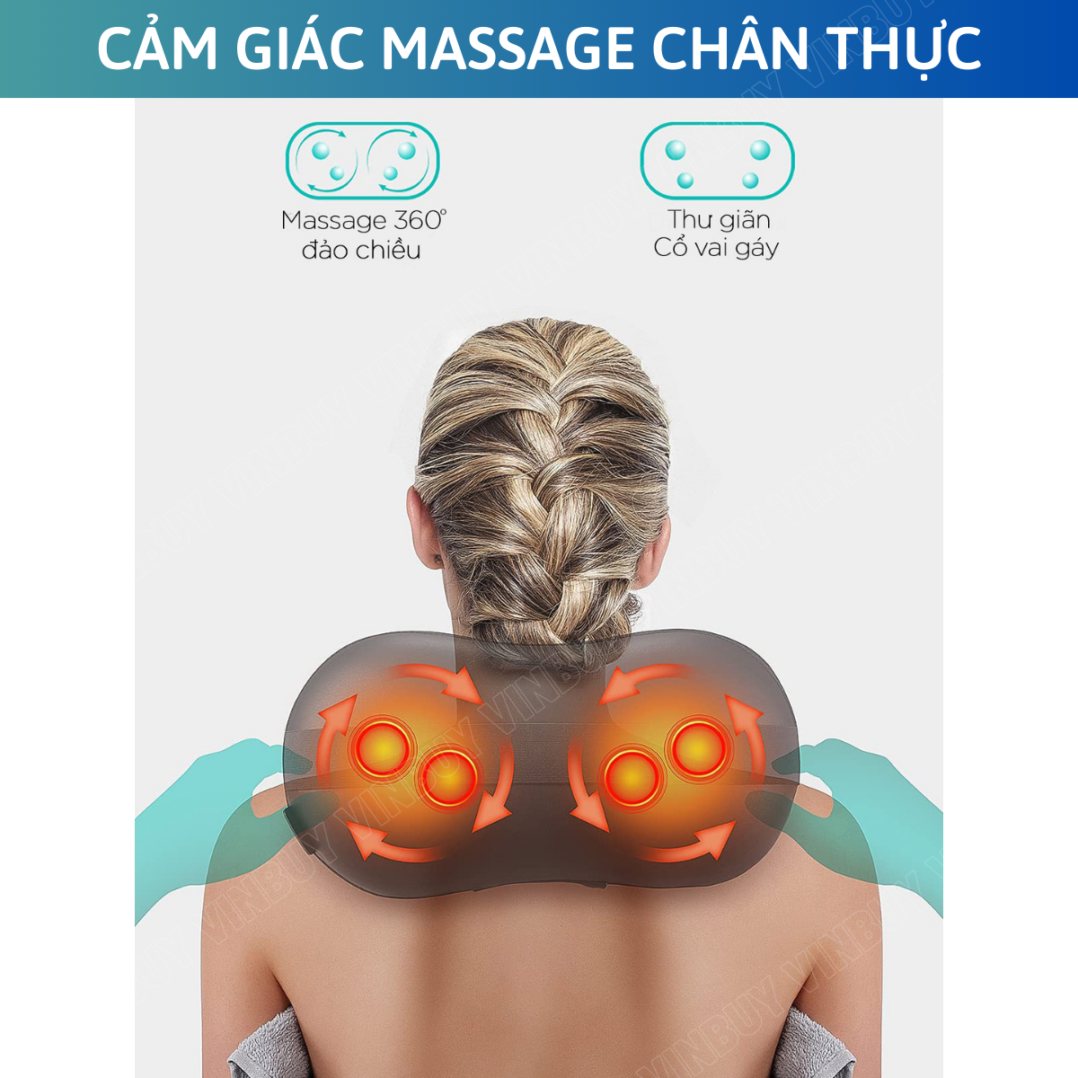 - Hãy lấy lại cân bằng trong cuộc sống!. Tại VinBuy, chúng tôi cung cấp những giải pháp massage giúp phục hồi cơ bắp, giải quyết chứng đau nhức thường xuyên của bạn. Chúng tôi tự tin sản phẩm của mình hiệu quả và cảm thấy hạnh phúc khi nhiều hàng phản hồi rằng sản phẩm VinBuy đã làm cho cuộc sống của họ trở nên thoải mái, dễ chịu hơn. Điều gì khiến sản phẩm của VinBuy trở nên độc đáo? Sản phẩm của VinBuy đã trải qua quá trình kiểm tra, thử nghiệm về hiệu quả và độ bền bỉ. Chúng tôi đưa phương pháp Shiatsu và kỹ thuật nhào bóp vào những sản phẩm có thiết kế hiện đại, hiệu năng cao. Động cơ của mỗi sản phẩm đều được hiệu chỉnh cẩn thận để bất kỳ ai cũng có thể dễ dàng thưởng thức nghệ thuật mát-xa ngay tại nhà mình. **Đặc Điểm Nổi Bật Sản Phẩm: Gối Massage Đa Năng VinBuy: