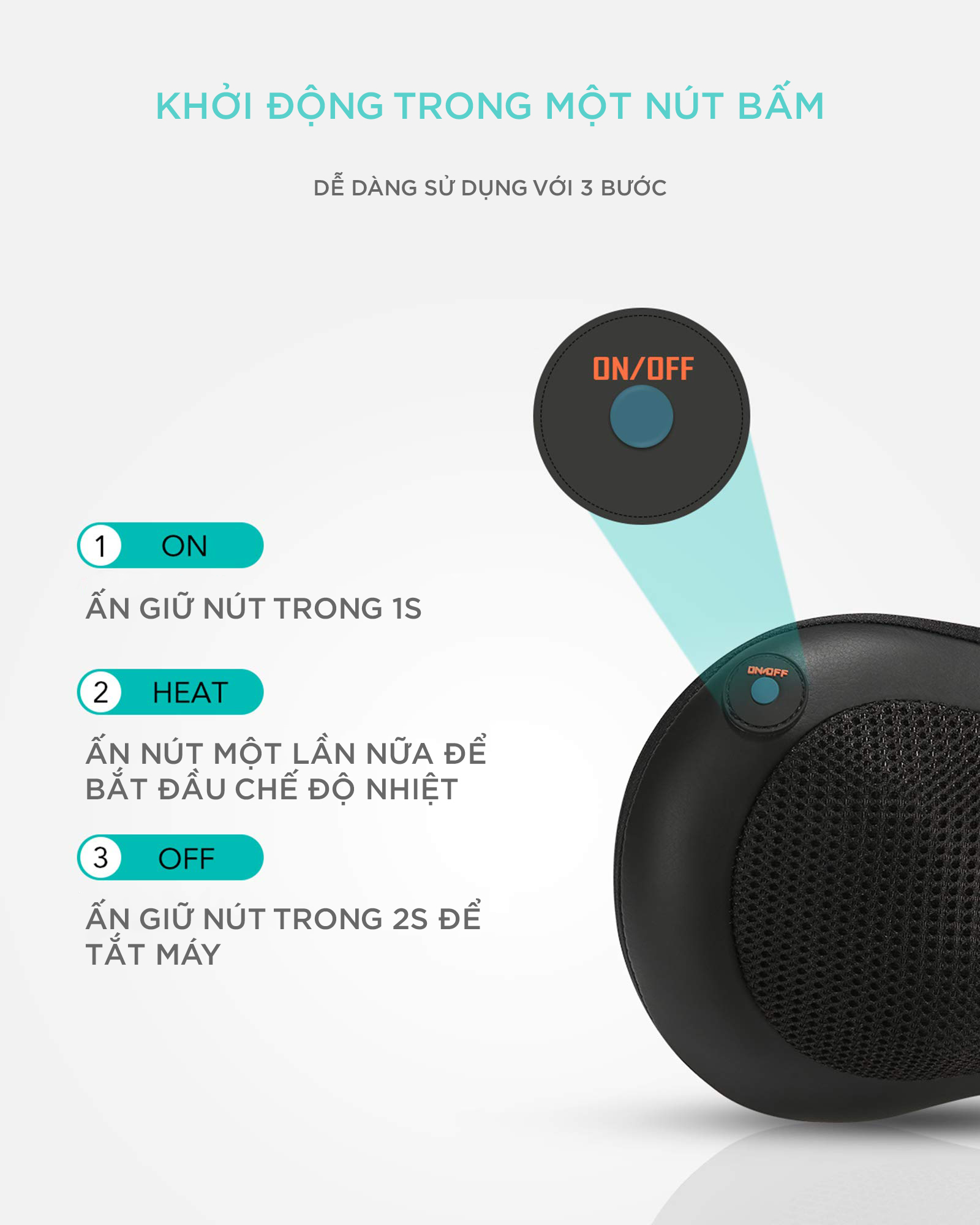 - MASSAGE NHIỆT: Gối massage đa năng đi kèm với chế độ massage nhiệt (112 ℉ ≈ 45 độ C) thấm sâu qua các cơ để mang lại cảm giác thư giãn hơn nữa, giảm đáng kể mệt mỏi và căng thẳng do bận rộn cuộc sống.