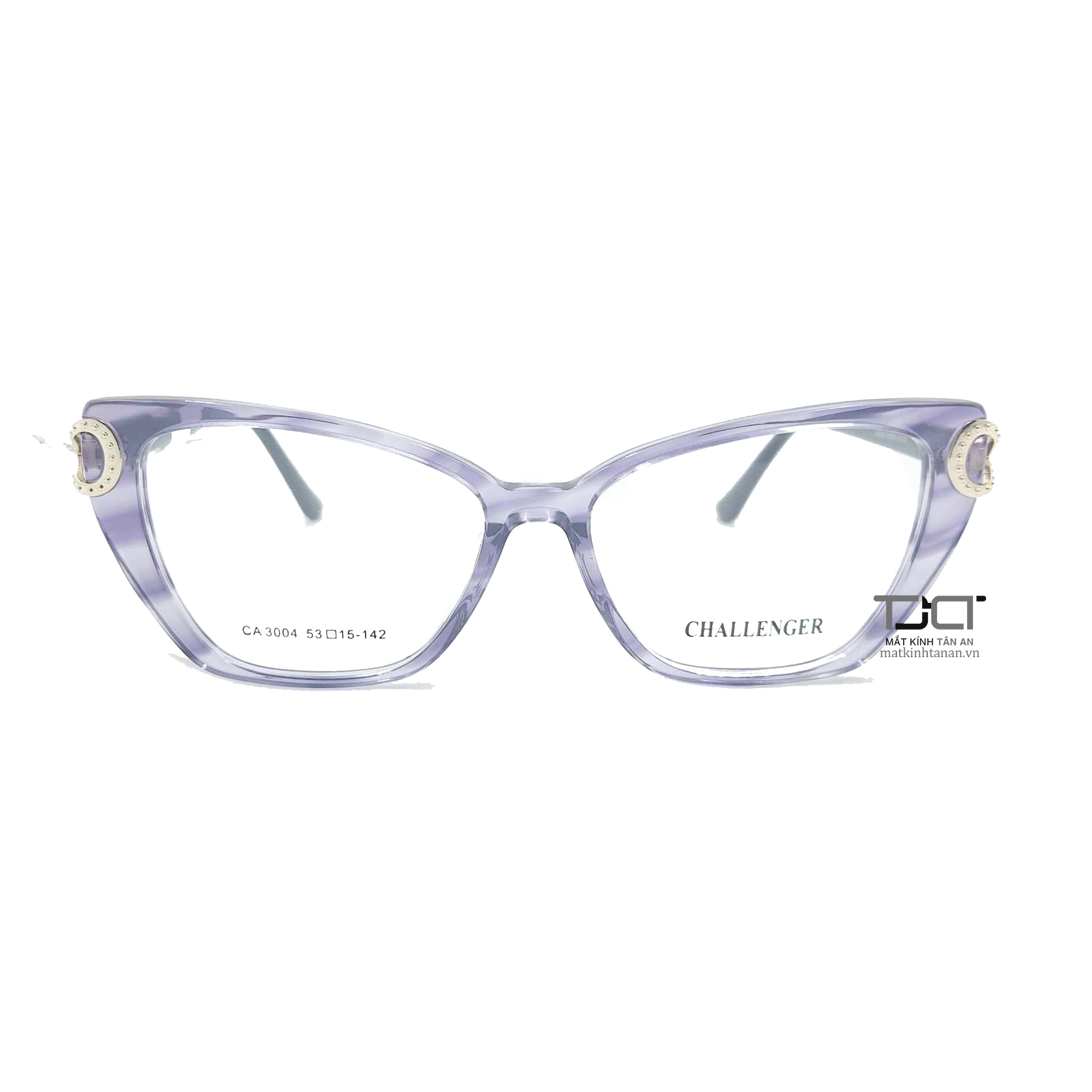 - Thương hiệu : Challenger CA3004-C3 - Size gọng: 53-15-142mm - Màu gọng: Tím - Kiểu dáng: Với thiết kế mang xu hướng Hàn quốc , phom tròng mắt mèo thơi trang. hiện đại cá