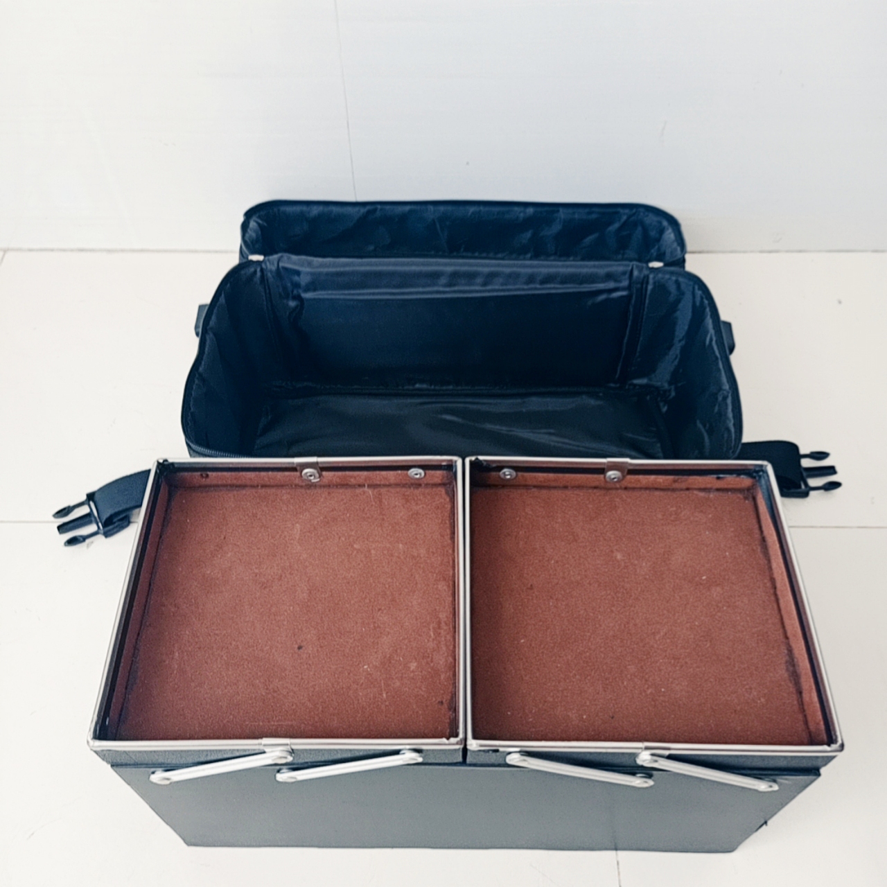 Cốp vải dù dày dặn 2 tầng 4 khay size lớn chuyên dụng để đồ nail, mi, phun xăm, trang điểm chuyên nghiệp Túi được làm từ vải dù nên rất chắc chắn và bền