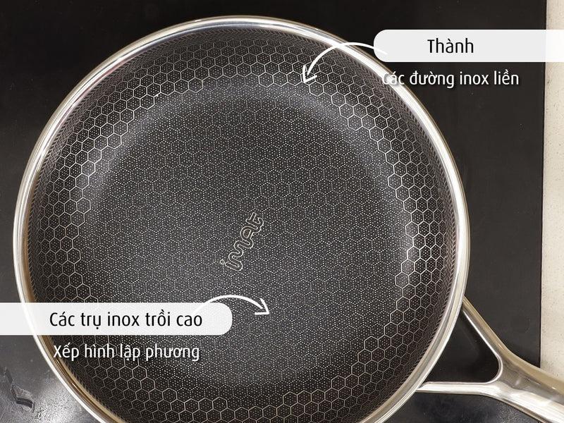 • Chảo tổ ong chống dính dạng tay cầm đáy liền 3 lớp Inox Sus304 vân chống trượt • Công nghệ Honey Comb - dạng tổ ong chống dính và chống quá nhiệt an toàn