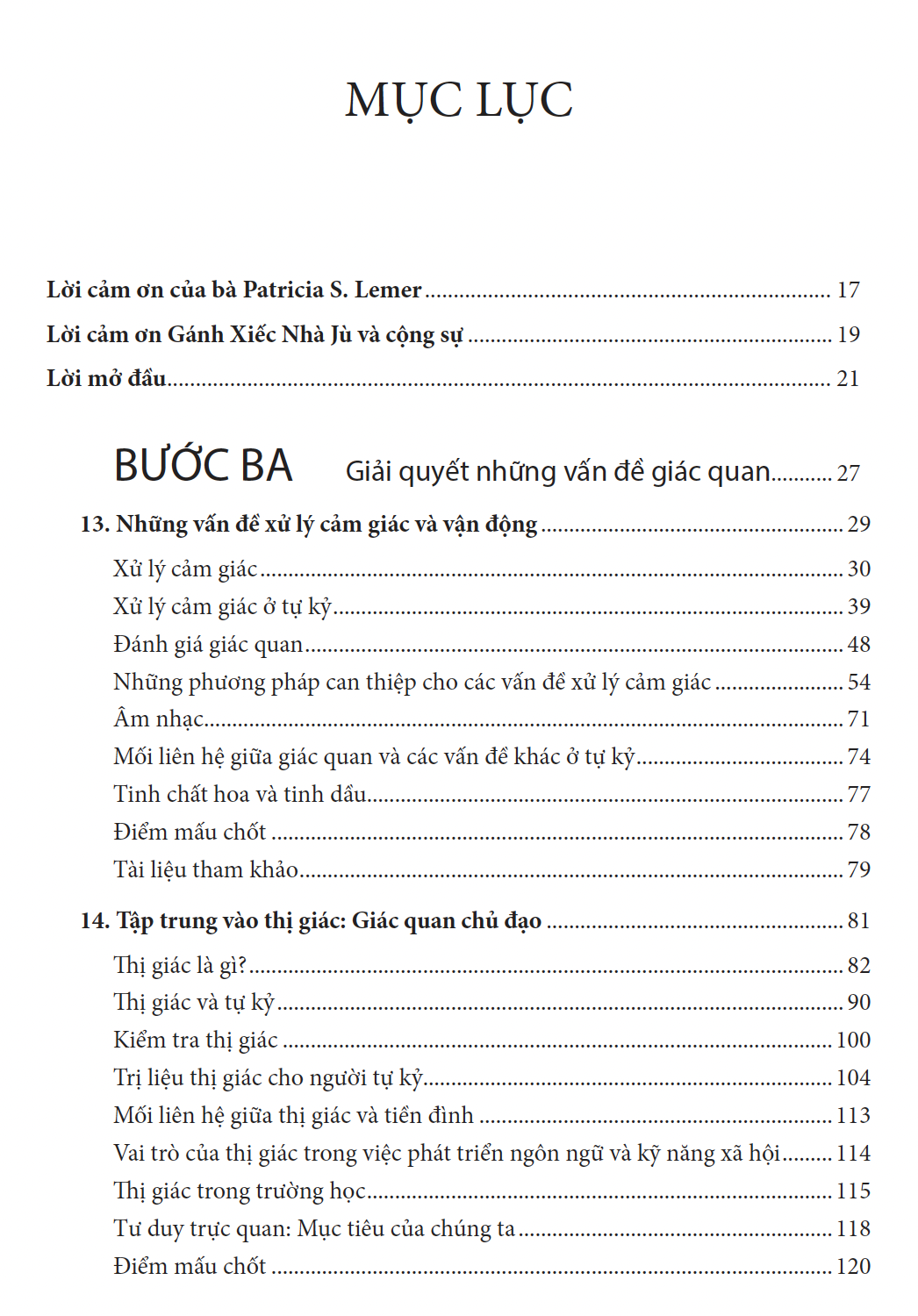 Với cách tiệp cận toàn diện về tự kỷ, tác giả đã đưa ra 5 Bước giúp loại bỏ dần các yếu tố gây căng thẳng cho người tự kỷ.