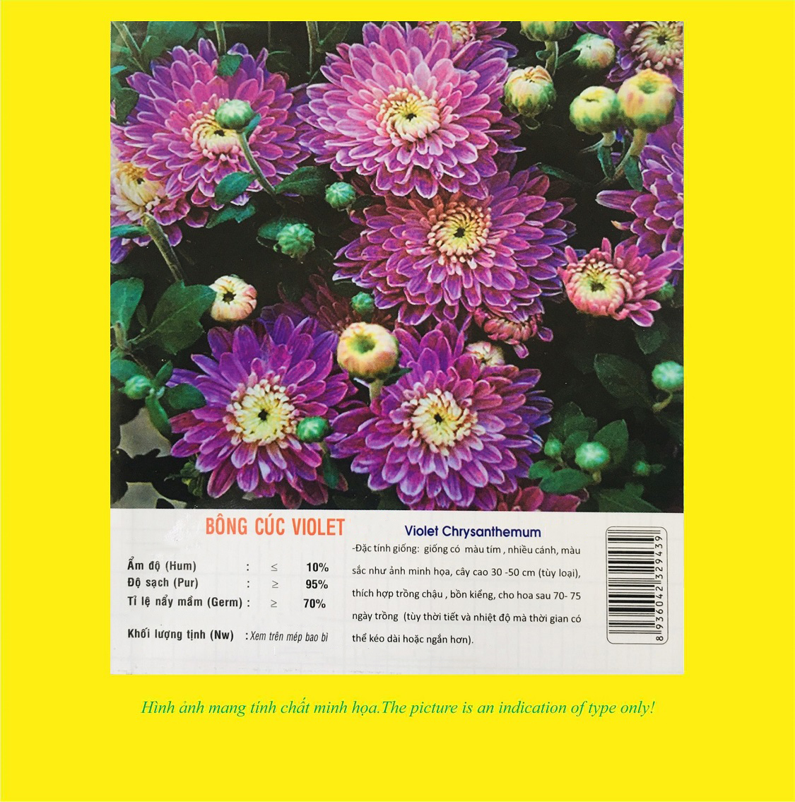Đặc tính giống: Hoa Cúc Violet là giống có hoa màu tím Violet rất đẹp, cây cao 30-50cm. Giống kháng bệnh tốt, giống có màu sắc như ảnh minh họa, thích hợp trồng trong chậu, bồn kiểng. Hoa Cúc Tím Violet cho hoa sau 70-75 ngày trồng