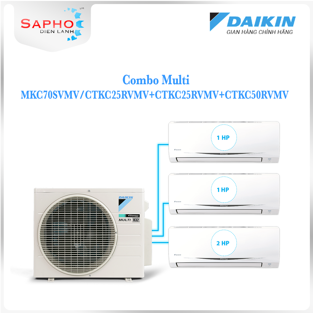 ✨Hệ Thống Máy Lạnh Multi S Daikin Combo MKC70SVMV/CTKC25RVMV+CTKC25RVMV+CTKC50RVMV Inverter Gas R32 Treo Tường 1 Chiều Lạnh Hàng Chính Hãng - Chỉ giao tại HCM