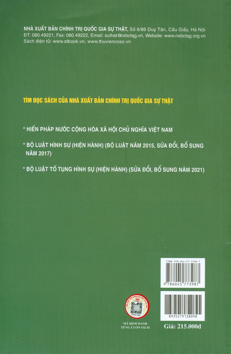 Nhằm đáp ứng nhu cầu tìm hiểu, nghiên cứu Bộ luật Hình sự của bạn đọc nói chung, của cán bộ làm công tác pháp luật, cán bộ nghiên cứu, giảng dạy pháp luật và