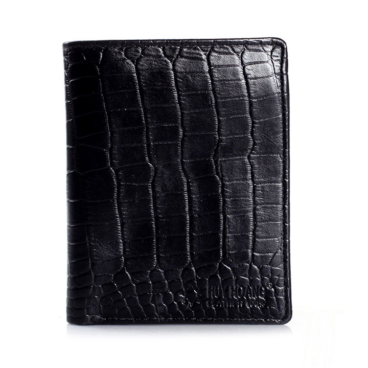 ✨HJ2120 - Bóp nam Huy Hoàng vân cá sấu kiểu đứng màu đen