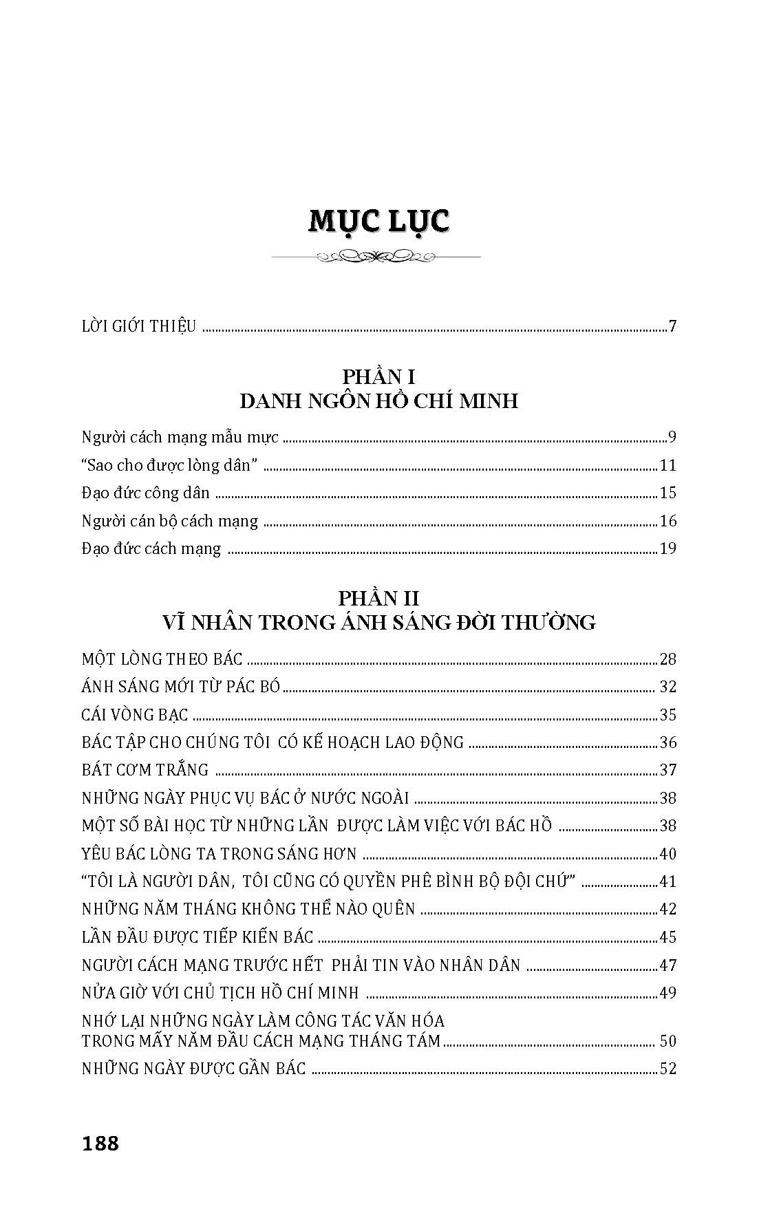 Sách nói về vị lãnh tụ kính yêu của dân tộc dưới góc nhìn gần gũi, thân thương. Mặc dù bám theo trình tự biên niên, sách vẫn cố gắng tổ chức theo các lĩnh