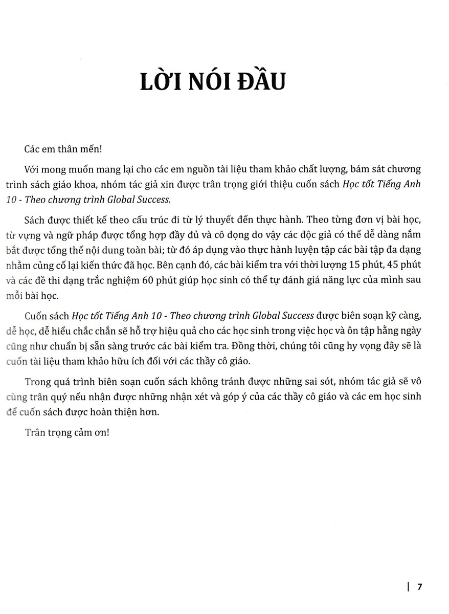 HỌC TỐT TIẾNG ANH 10 – THEO CHƯƠNG TRÌNH GLOBAL SUCCESS Cuốn sách Học tốt Tiếng Anh 10 theo chương trình Global Success được biên soạn nhằm hỗ trợ học sinh nắm vững kiến thức,