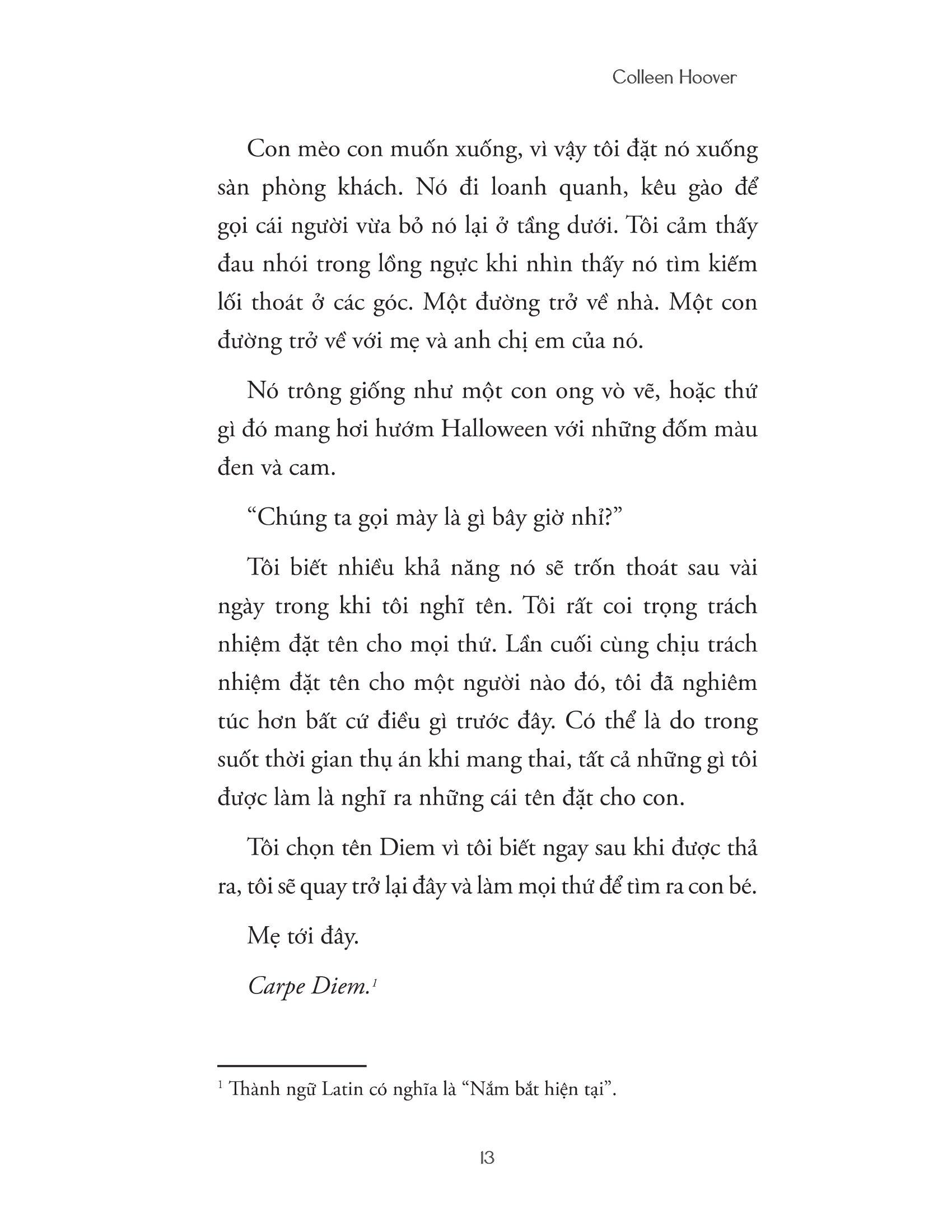 “Cuốn sách mới của Colleen Hoover sẽ xé nát rồi chữa lành trái tim bạn… Một tuyệt tác đầy cảm động về mất mát và hy vọng, nỗi hối hận và tha thứ, và rằng tình yêu có thể chữa lành mọi thứ.” ―POPSUGAR