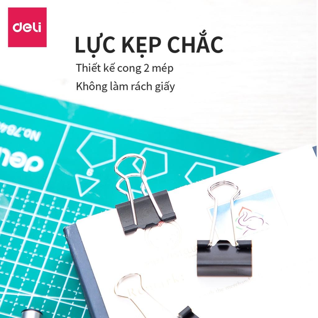 Hộp 12 Kẹp Bướm 25mm - Deli E38564 Kích thước vô cùng nhỏ gọn và tiện dụng, thích hợp để kẹp những liên giấy nhỏ và mỏng, như biên lai, hoá đơn. Kẹp làm bằng