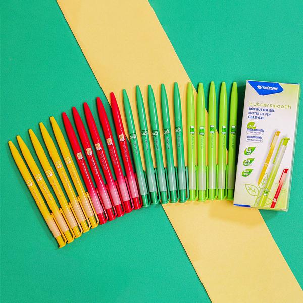 Hộp 20 Bút Gel Buttersmooth B 0.5 mm - Thiên Long GELB-031 - Phiên Bản Trà - Mực Xanh - Matcha Sữa Bút có thiết kế hiện đại, kết hợp hài hòa giữa phần thân