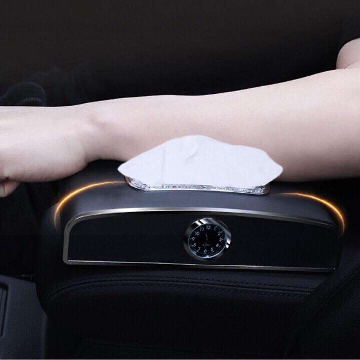 ✨Hộp Đựng Khăn Giấy Trên ô Tô Có Đồng Hồ Và Bảng Sđt Cao Cấp (Kèm Video thực tế)