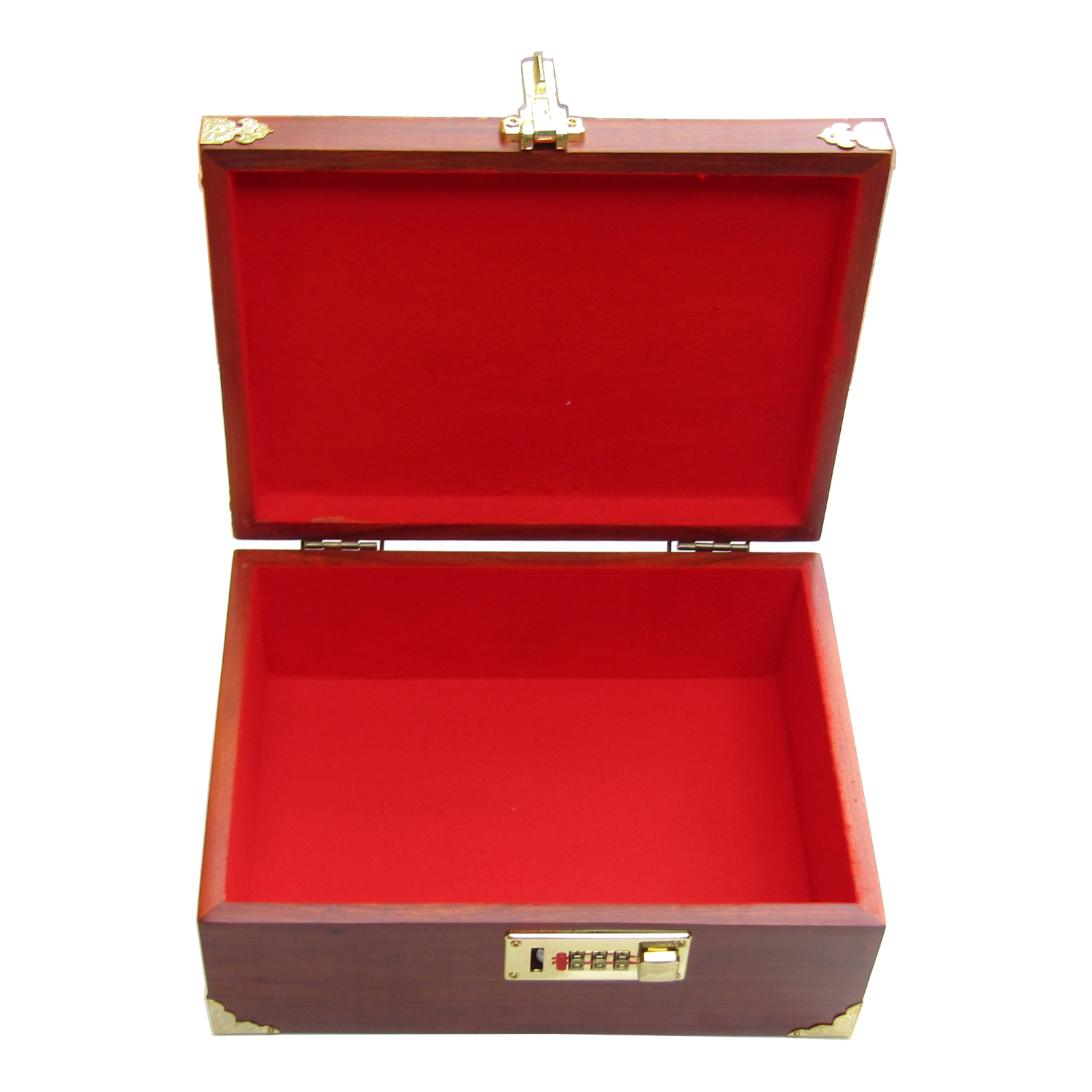 Các góc hộp được sử dụng những chện đồng vàng hình dơi vươn cánh rộng mang ý nghĩa phong thủy độc đáo bởi con Dơi mang ngụ ý được phúc, phúc vận và hạnh phúc. Hộp đựng trang sức dùng khóa số giúp người sử dụng có thể tùy chỉnh mật khầu cho riêng mình khi sử dụng, bảo đảm tính an toàn cho giá trị trang sức trong hộp.