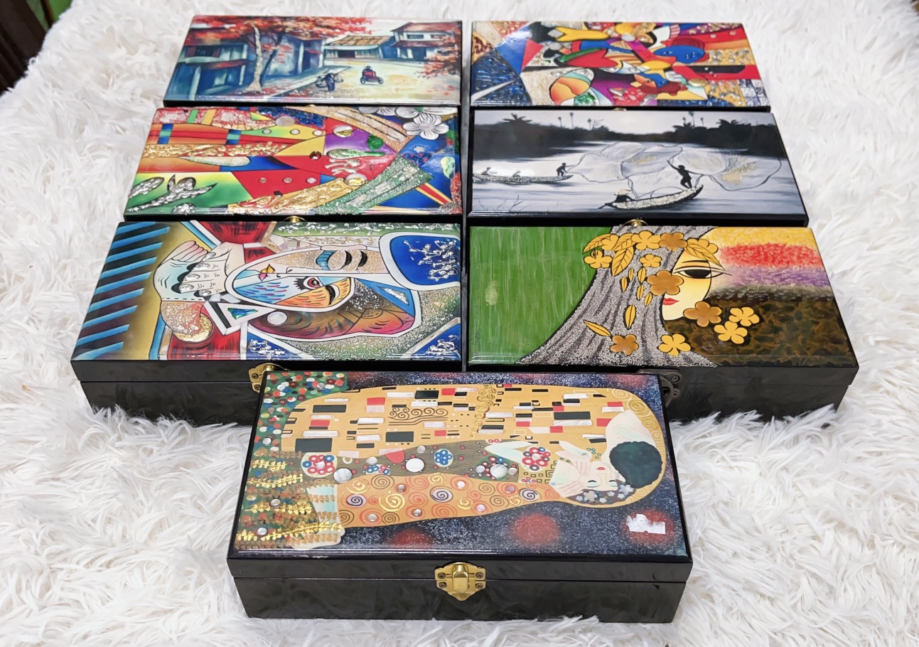 ✨Hộp nữ trang Sơn Mài Cao Cấp Thanh Bình Lê size 14x24x6 cm đựng đồ trang sức, vật dụng nhỏ xinh, trang trí, làm quà tặng ý nghĩa