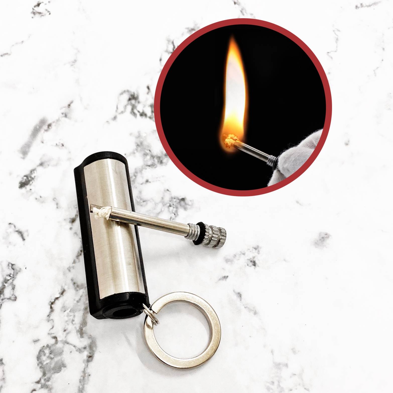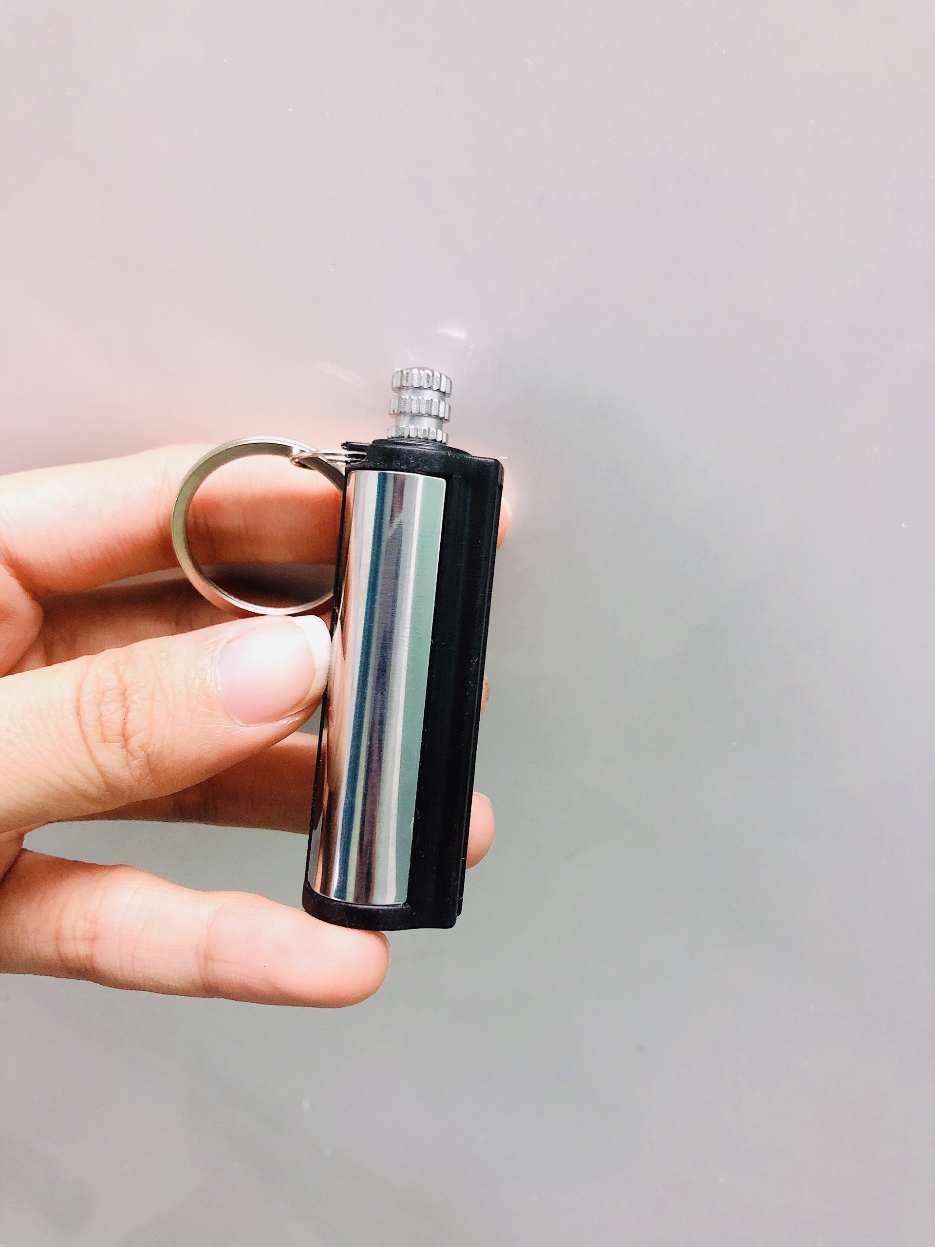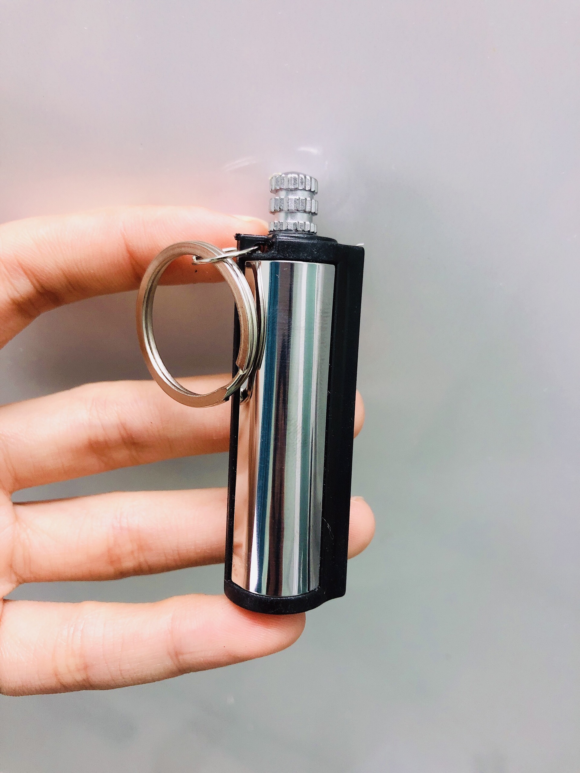 Hột quẹt bật lửa móc khóa diêm xăng sinh tồn hình Trụ Tròn - xài xăng