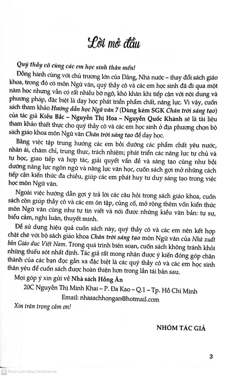 Hướng Dẫn Học Ngữ Văn 7- Tập 2 (Bám Sát SGK Chân trời sáng tạo ) Với mong ước giảm bớt gánh nặng cho quý thầy cô và giúp các em khám phá vẻ kì thú của văn chương, Nhà sách gửi đến bạn đọc bộ sách tham khảo Ngữ văn 7 (dùng cho bộ sách giáo khoa bám sát sách giáo khoa chân trời sáng tạo ). Mỗi bộ sách tham khảo sẽ bám sát chương trình của từng bộ sgk mới. Phần gợi ý theo hướng mở, có các câu hỏi mở rộng, nâng cao,… phù hợp với phương pháp dạy học phát triển phẩm chất và năng lực. Với kiến thức sâu rộng từ những tác giả có bề dày giảng dạy trong nhiều năm, chắc chắn các quyển sách do Nhà sách chúng tôi phát hành sẽ đảm bảo chặt chẽ về mặt nội dung lẫn cách trình bày, giúp các em học sinh dễ dàng tiếp thu kiến thức từ cơ bản đến nâng cao, góp phần thúc đẩy sự yêu thích và say mê trong học tập và rèn luyện, phát triển trí tuệ và nâng cao năng lực bản thân. Chúc các em trở thành những người con ngoan trò giỏi của gia đình và xã hội.