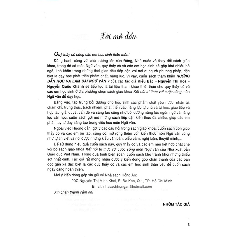 Trong cuốn sách, chúng tôi có sử dụng các văn bản của các tác giả để làm ngữ liệu phục vụ cho việc giảng dạy và học tập. Do hạn chế về điện kiện, chúng