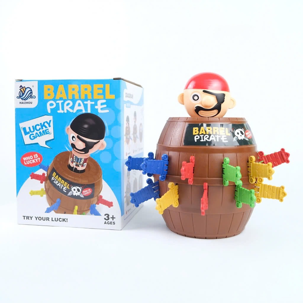 Mô tả sản phẩm: Trò chơi hải tặc với thiết kế thùng gỗ và nhân vật hải tặc ngộ nghĩnh. Chất liệu nhựa an toàn, bền đẹp, không góc cạnh, an toàn cho